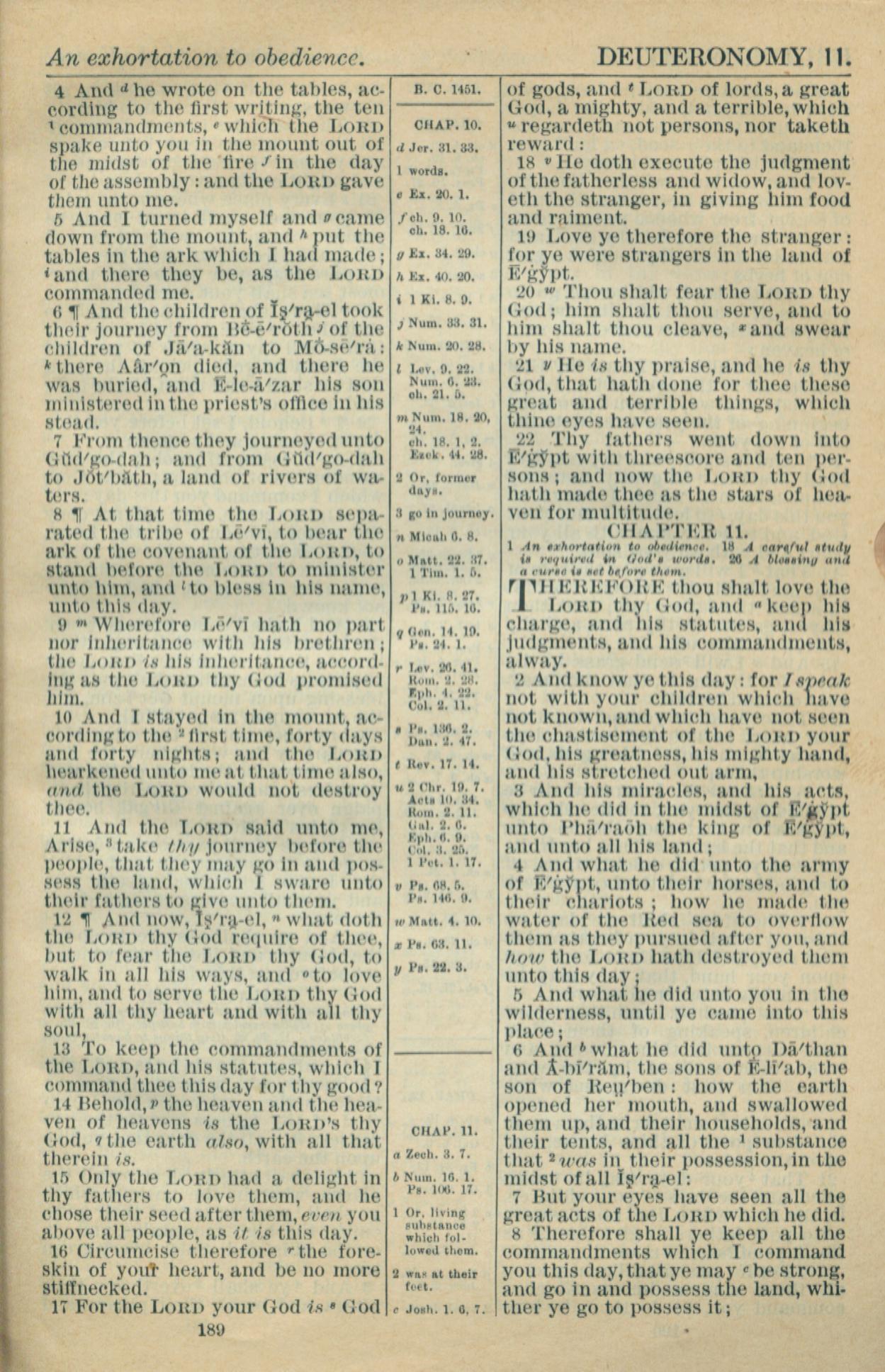 1916年Holy Bible 申命記 10 章 4 節到 11 章 8 節