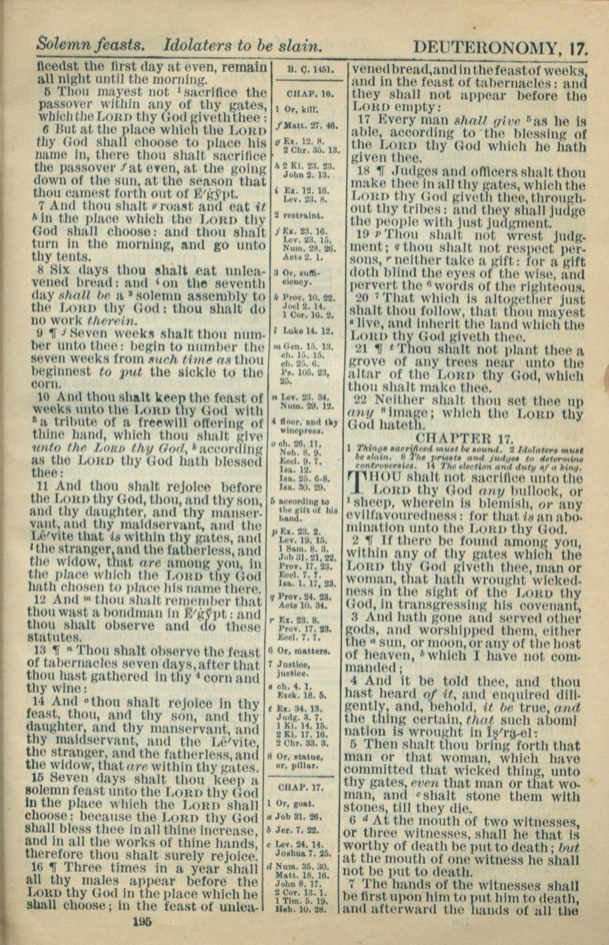 1916年Holy Bible 申命記 16 章 5 節到 17 章 7 節