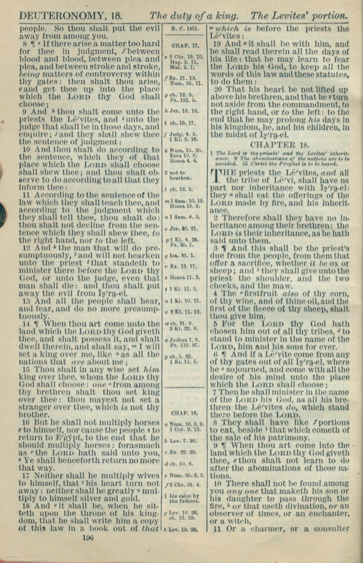 1916年Holy Bible 申命記 17 章 8 節到 18 章 11 節