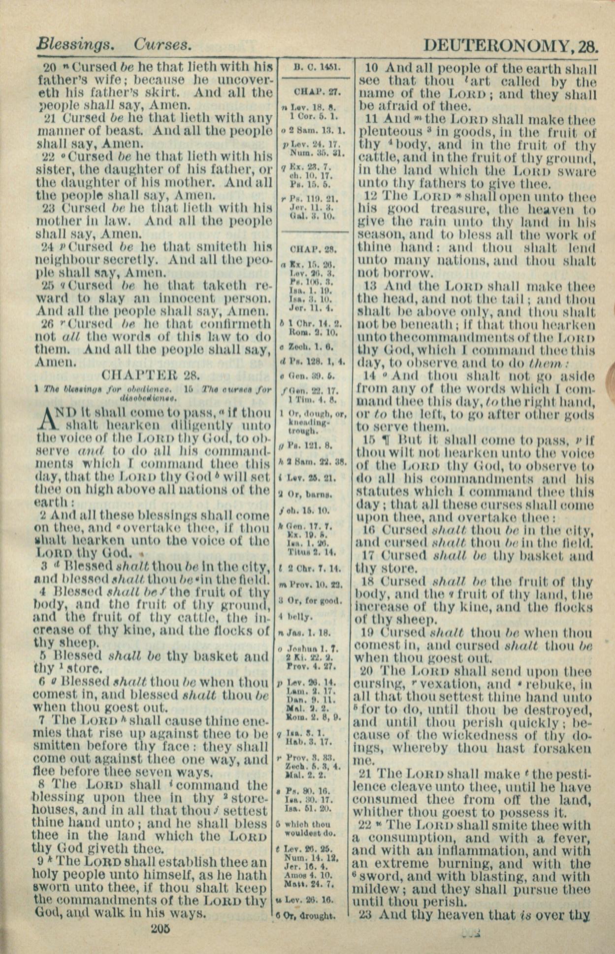1916年Holy Bible 申命記 27 章 20 節到 28 章 23 節