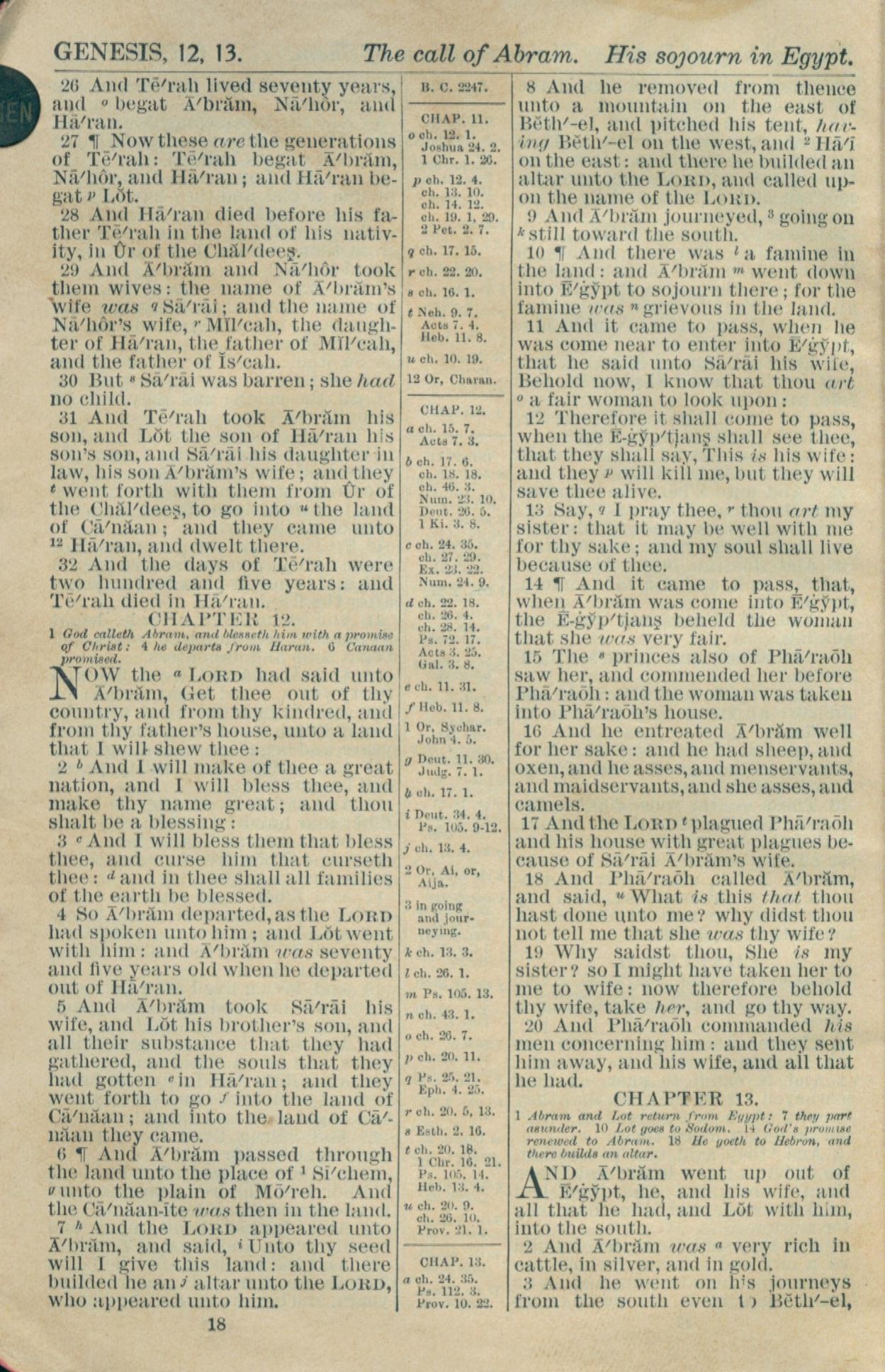 1916年Holy Bible 創世記 11 章 26 節到 13 章 3 節