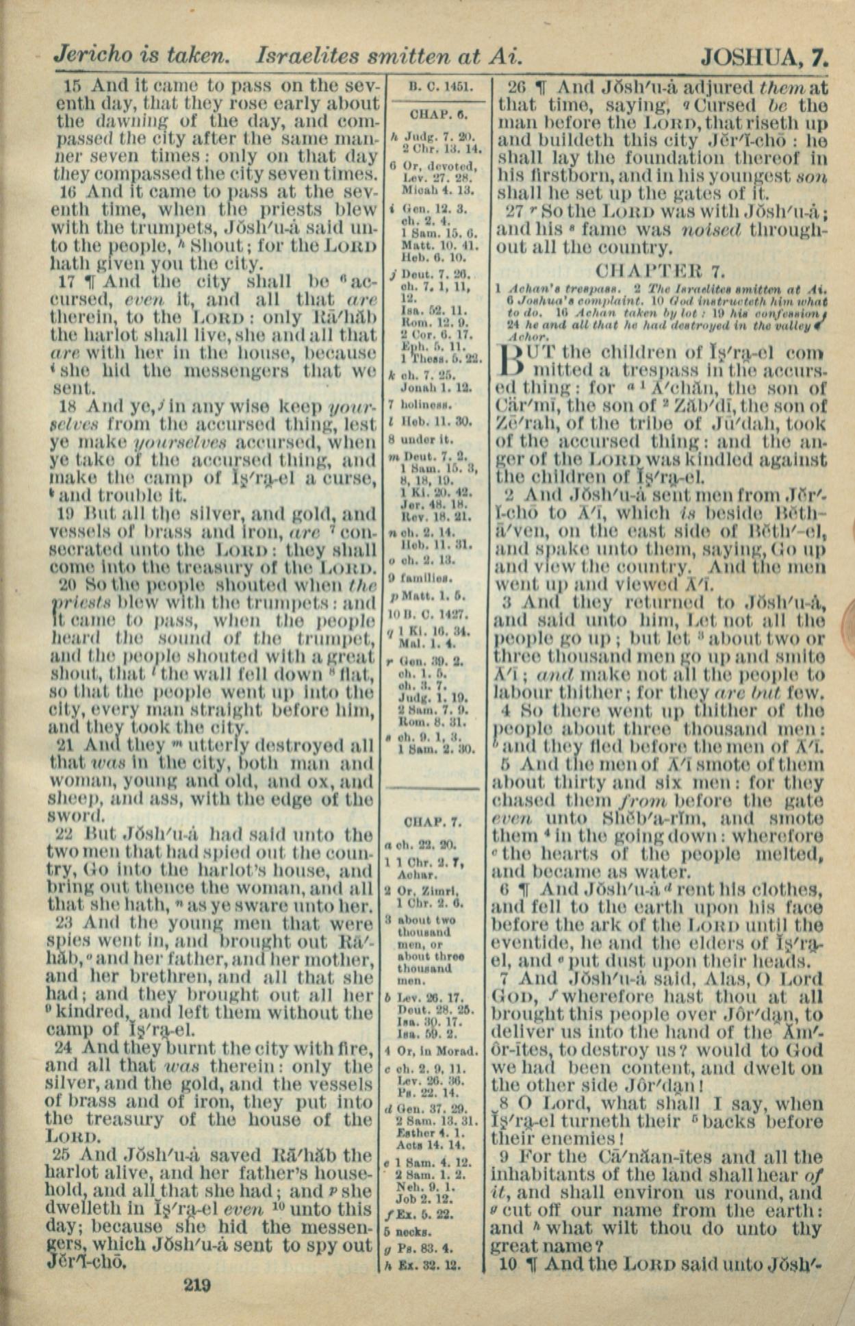 1916年Holy Bible 約書亞記 6 章 15 節到 7 章 10 節
