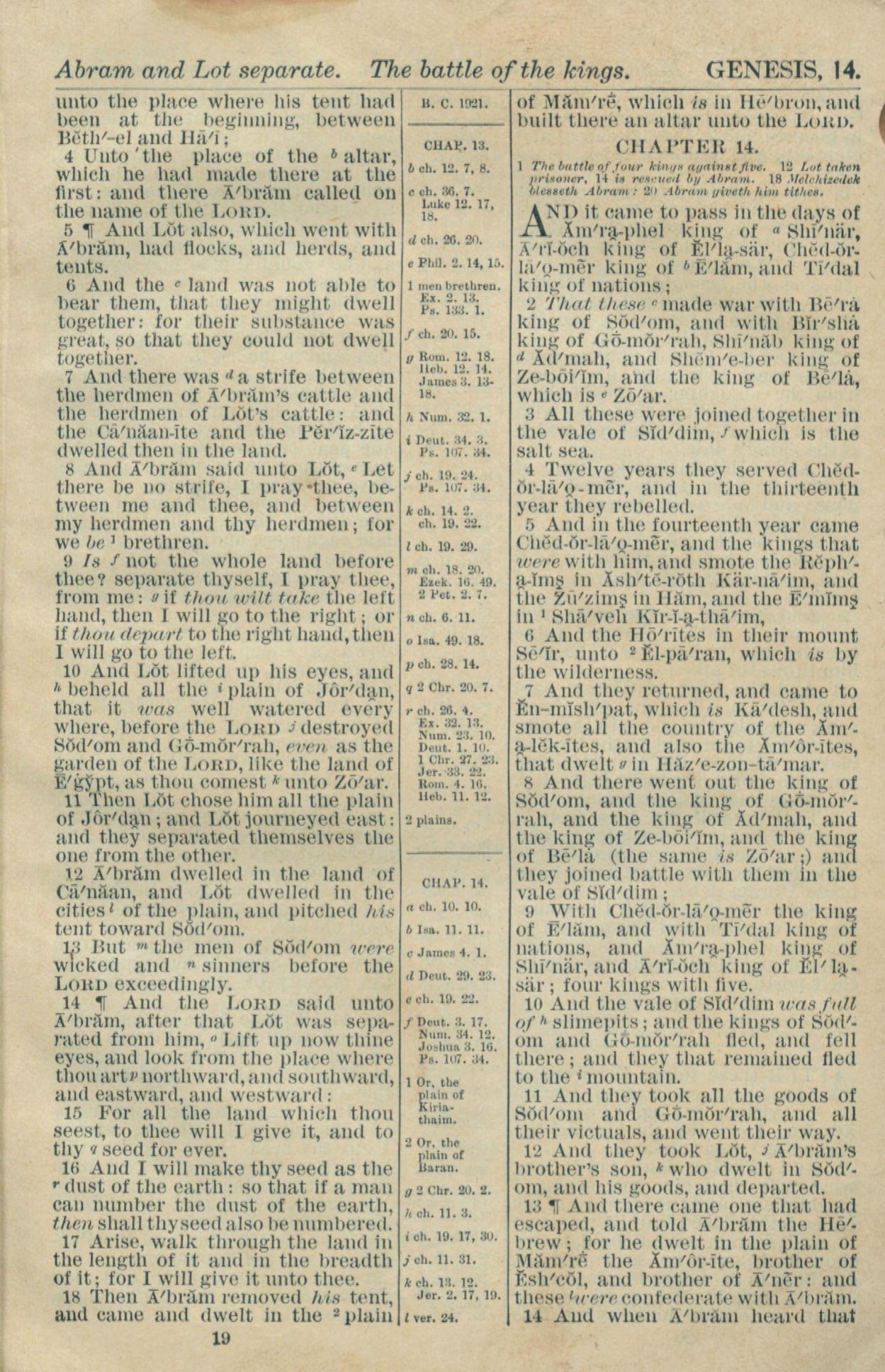 1916年Holy Bible 創世記 13 章 4 節到 14 章 14 節