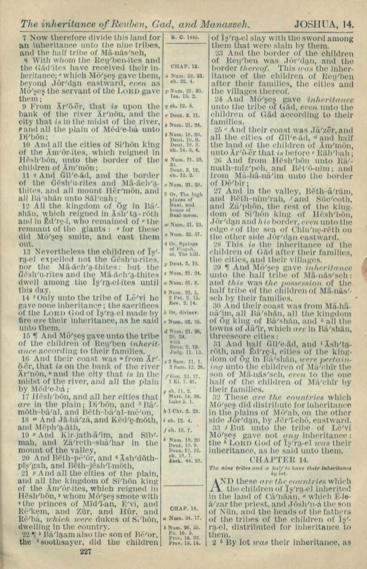 1916年Holy Bible 約書亞記 13 章 7 節到 14 章 2 節