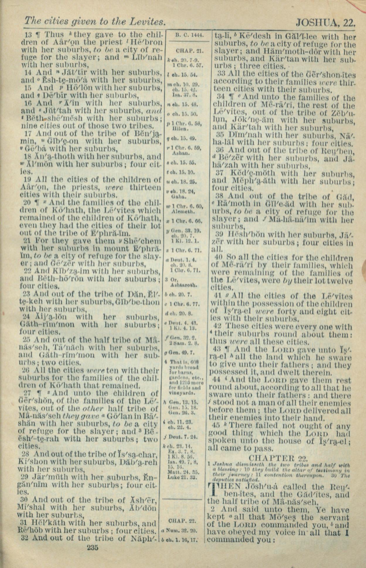 1916年Holy Bible 約書亞記 21 章 13 節到 22 章 2 節