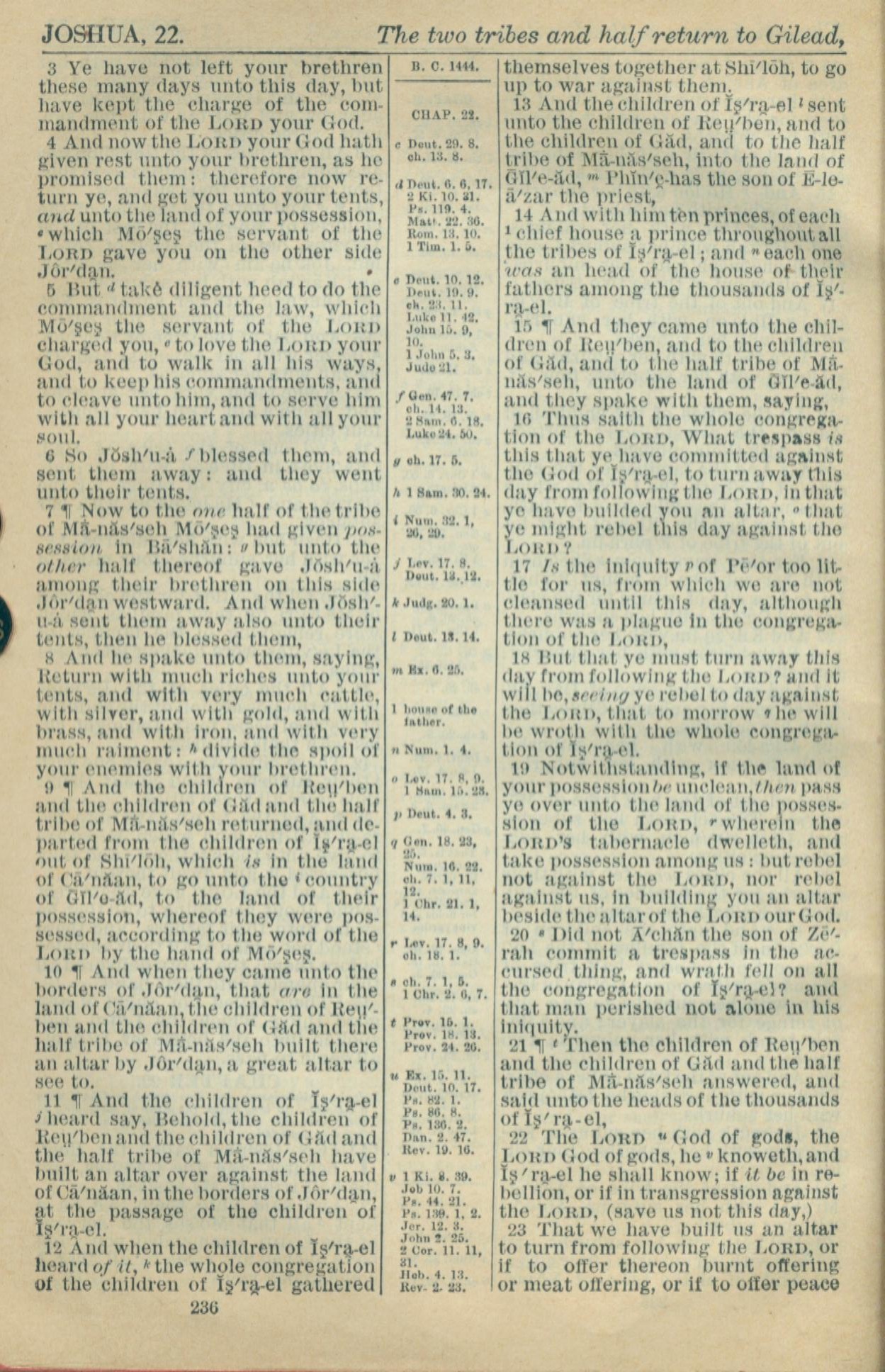 1916年Holy Bible 約書亞記 22 章 3 節到 22 章 23 節