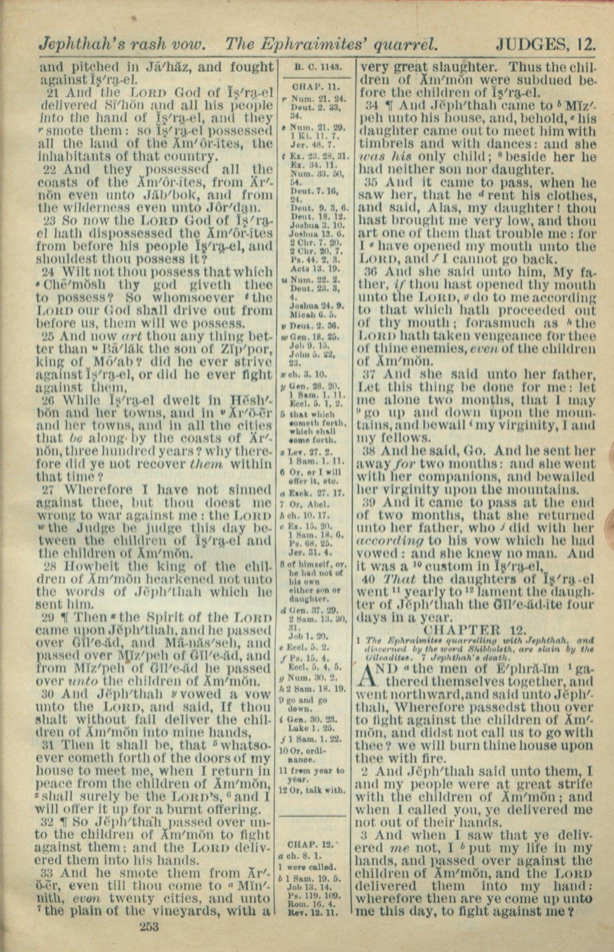 1916年Holy Bible 士師記 11 章 21 節到 12 章 3 節
