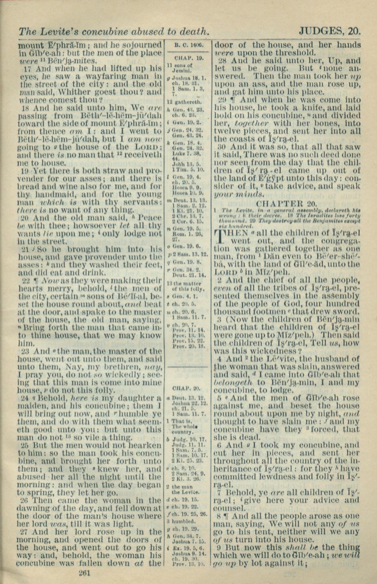 1916年Holy Bible 士師記 19 章 17 節到 20 章 9 節