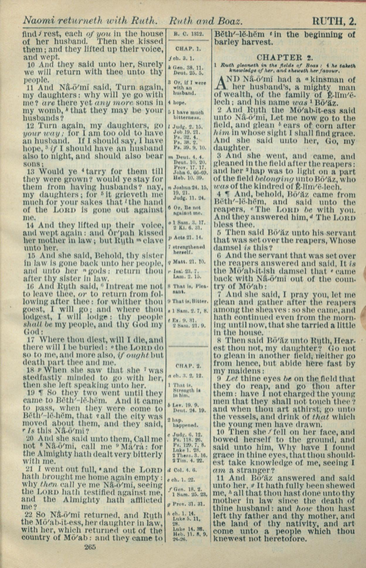 1916年Holy Bible 路得記 1 章 10 節到 2 章 11 節