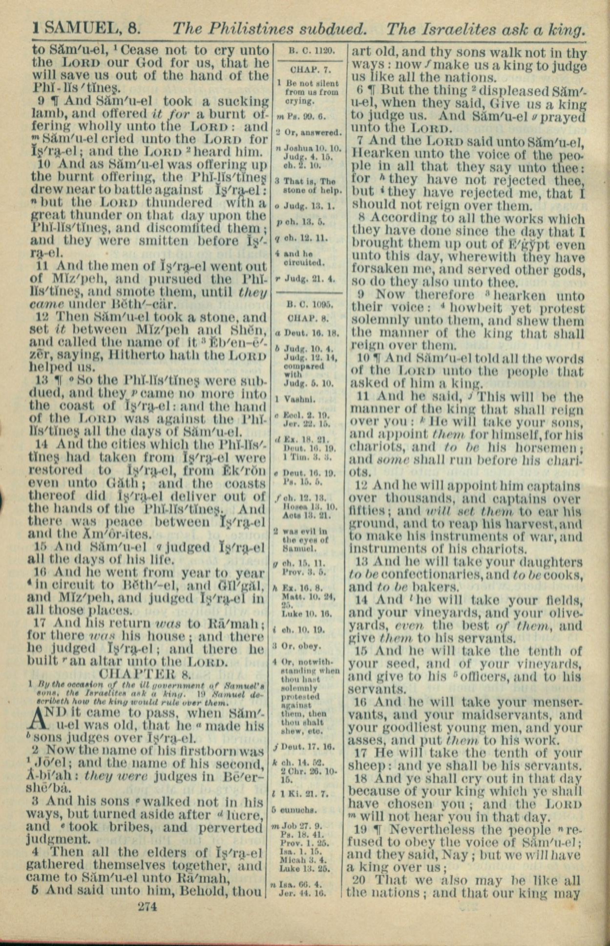 1916年Holy Bible 撒母耳記上 7 章 9 節到 8 章 20 節