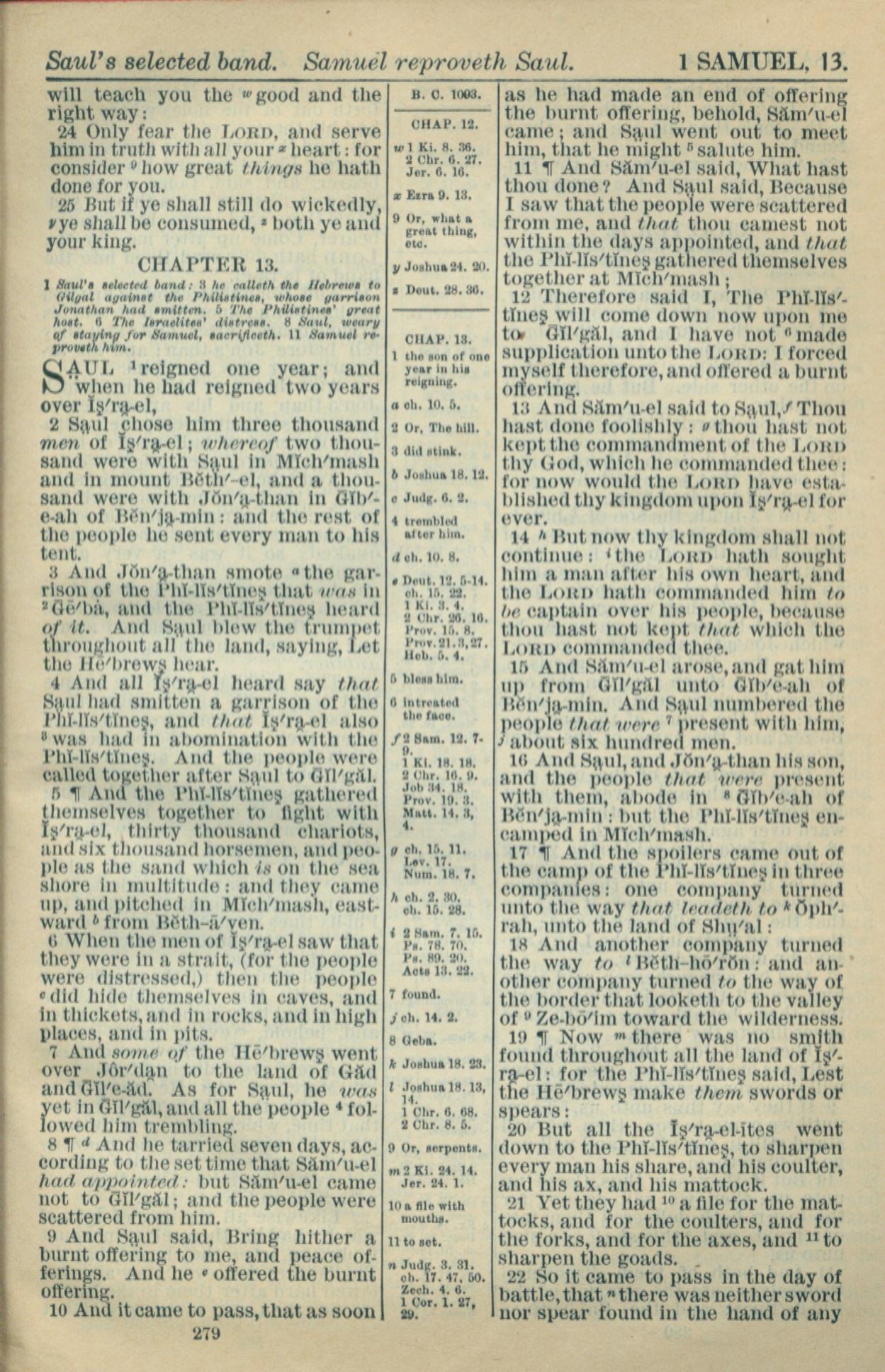 1916年Holy Bible 撒母耳記上 12 章 24 節到 13 章 22 節