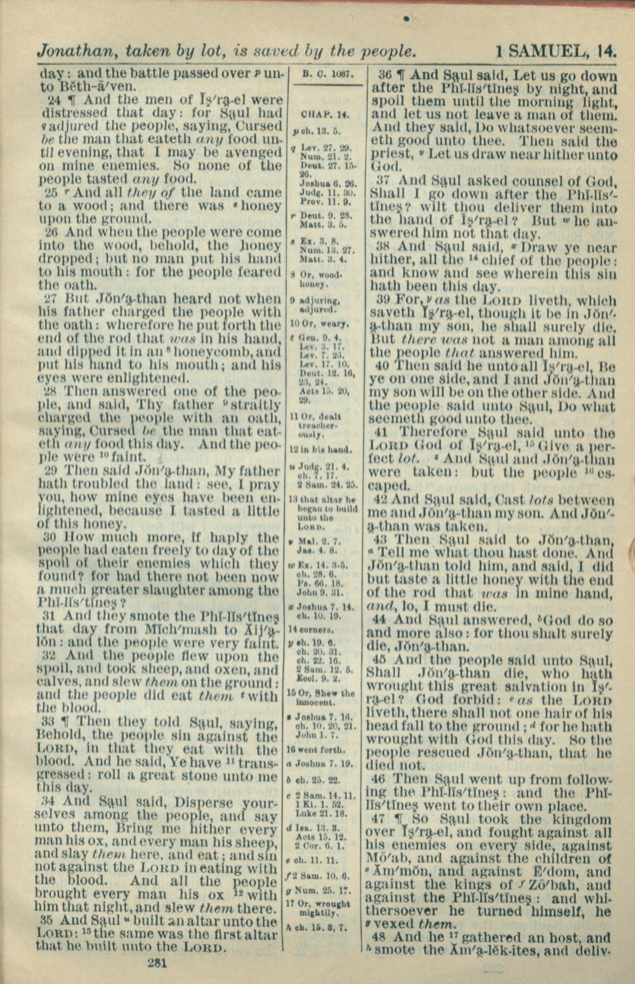 1916年Holy Bible 撒母耳記上 14 章 24 節到 14 章 48 節