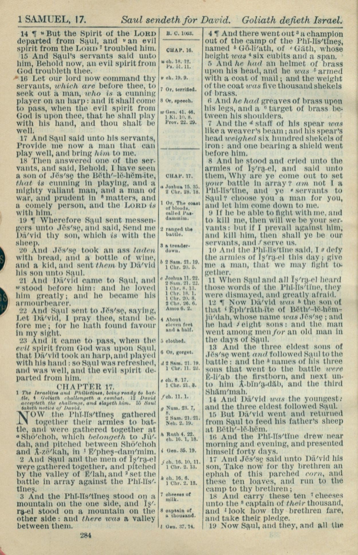 1916年Holy Bible 撒母耳記上 16 章 14 節到 17 章 19 節