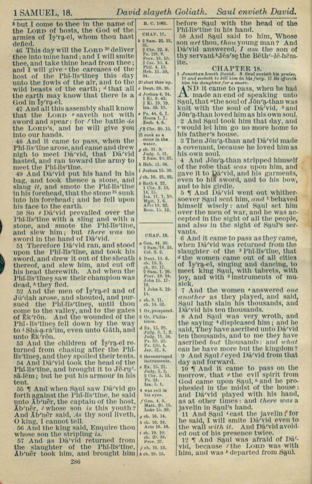 1916年Holy Bible 撒母耳記上 17 章 46 節到 18 章 12 節