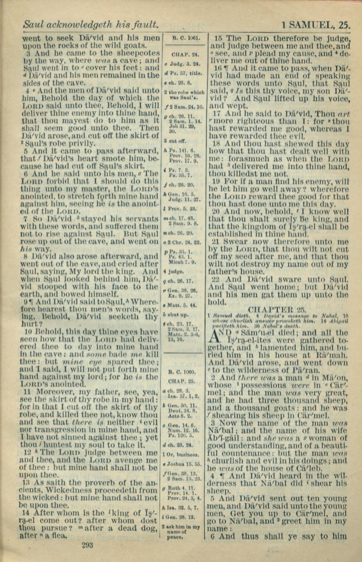 1916年Holy Bible 撒母耳記上 24 章 3 節到 25 章 6 節