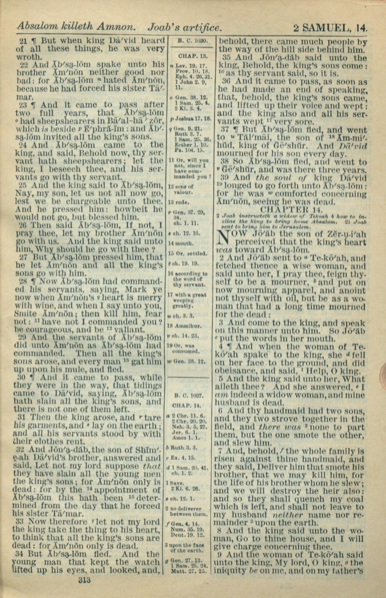 1916年Holy Bible 撒母耳記下 13 章 21 節到 14 章 9 節