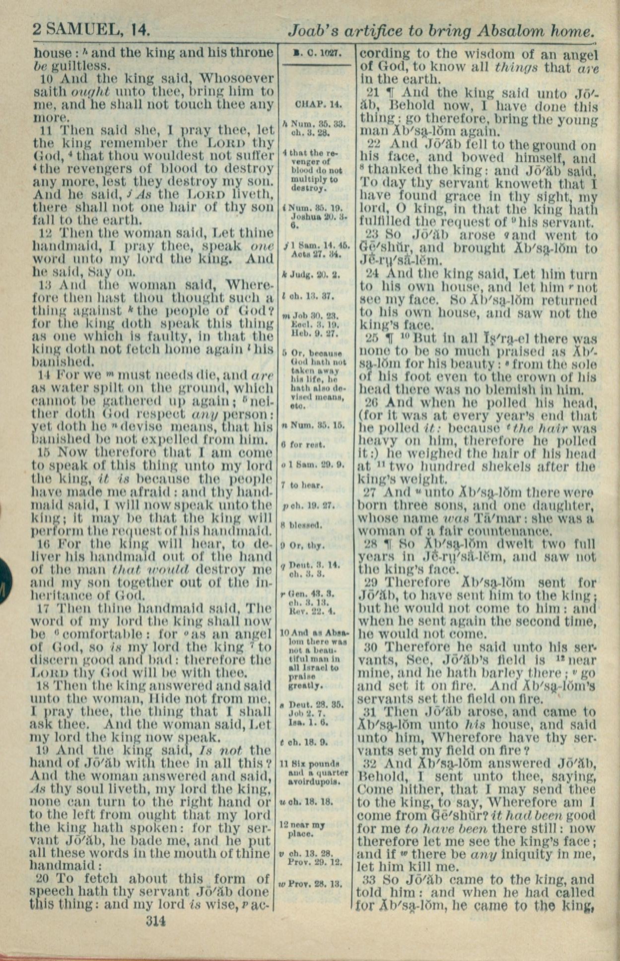 1916年Holy Bible 撒母耳記下 14 章 10 節到 14 章 33 節