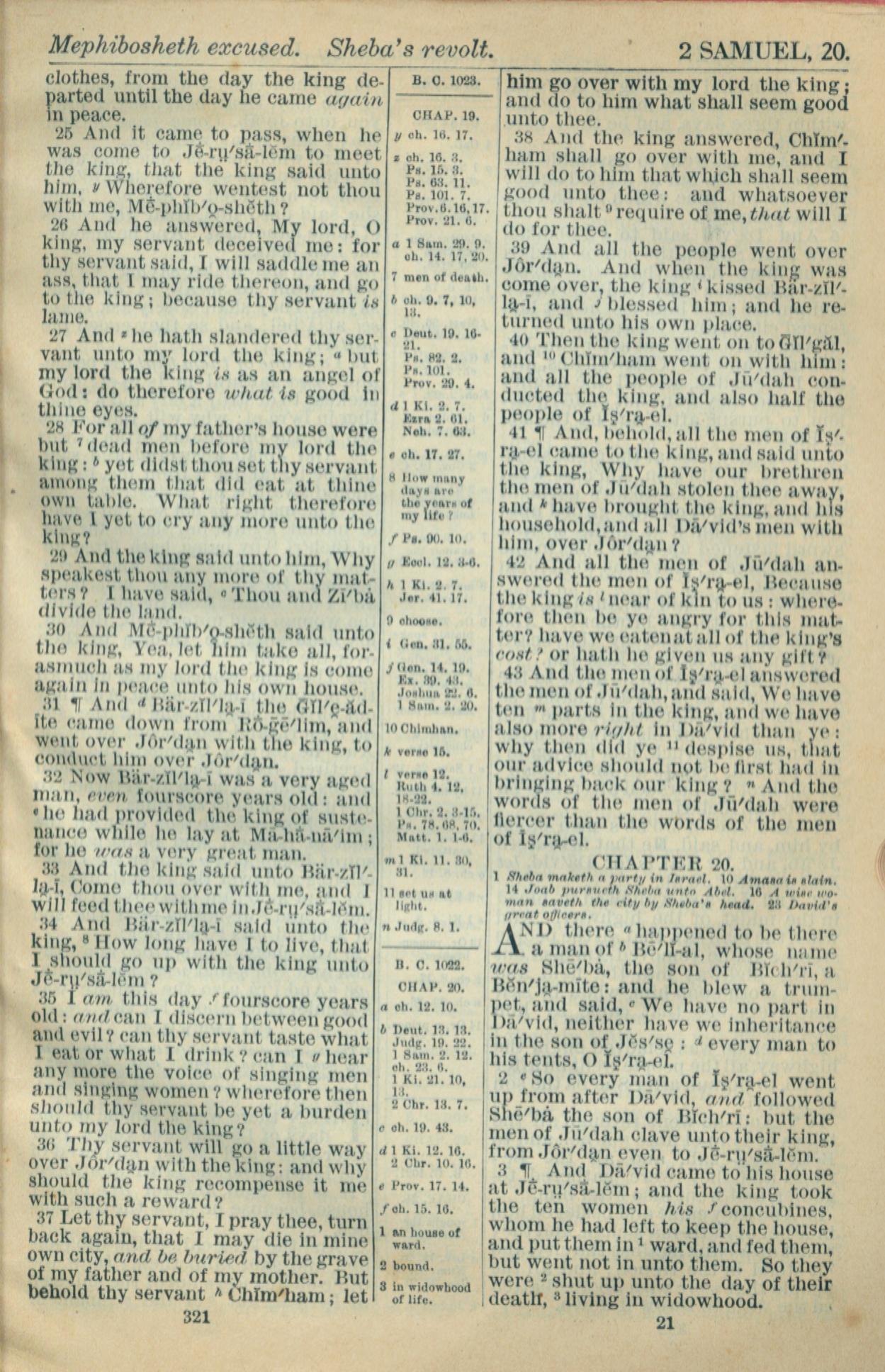 1916年Holy Bible 撒母耳記下 19 章 25 節到 20 章 3 節