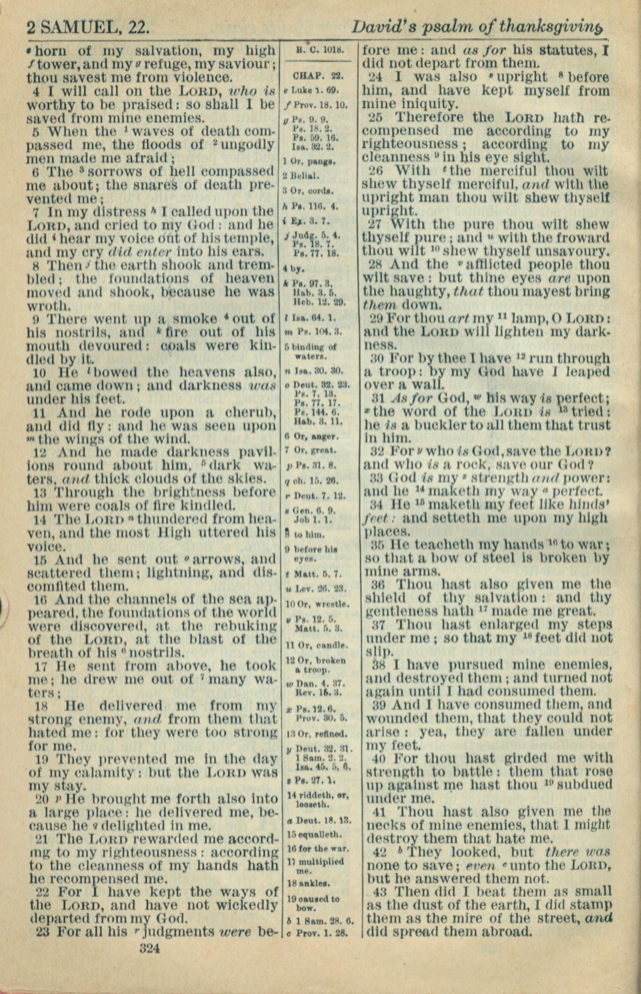 1916年Holy Bible 撒母耳記下 22 章 4 節到 22 章 43 節