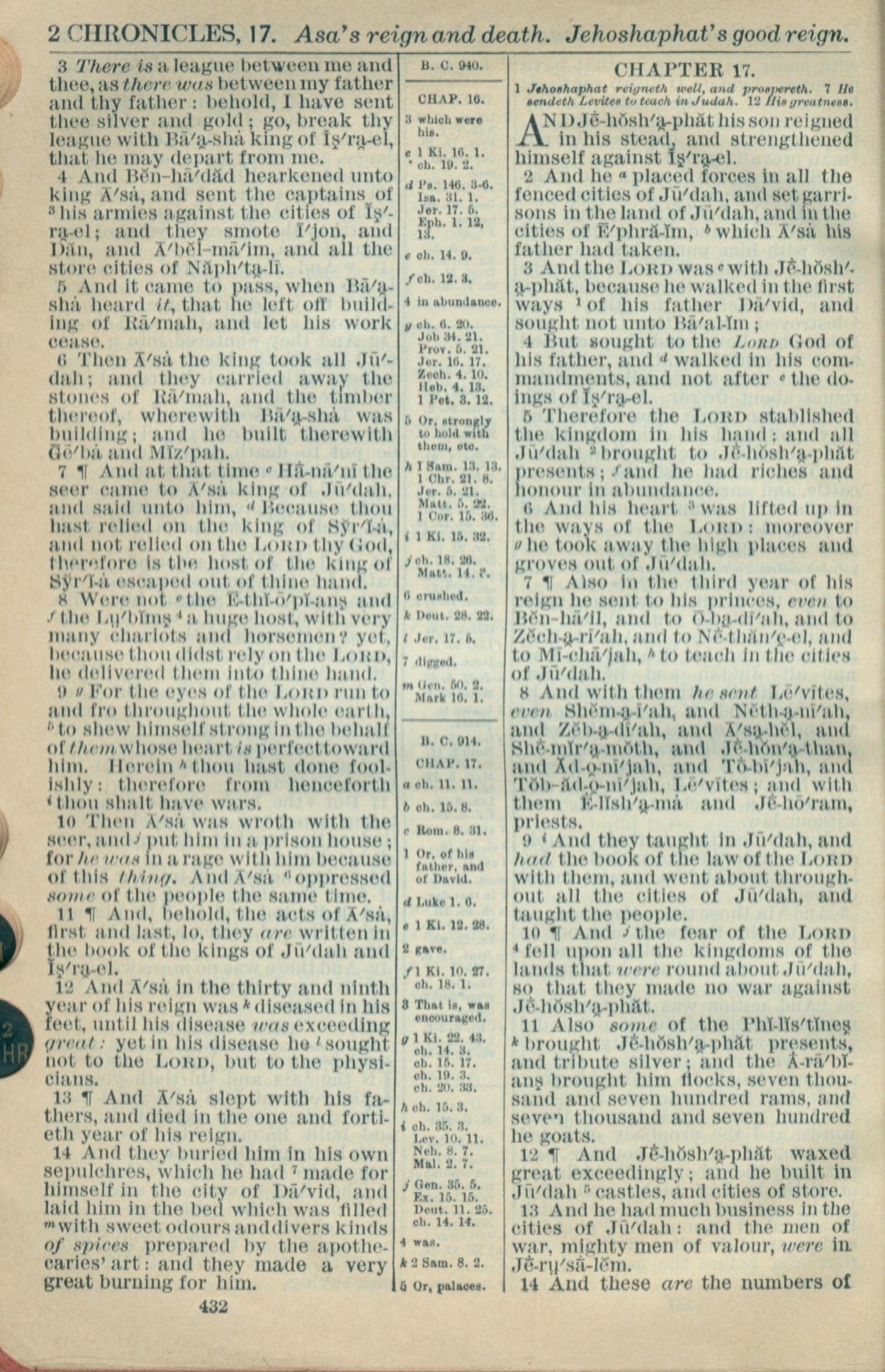 1916年Holy Bible 歷代志下 16 章 3 節到 17 章 14 節