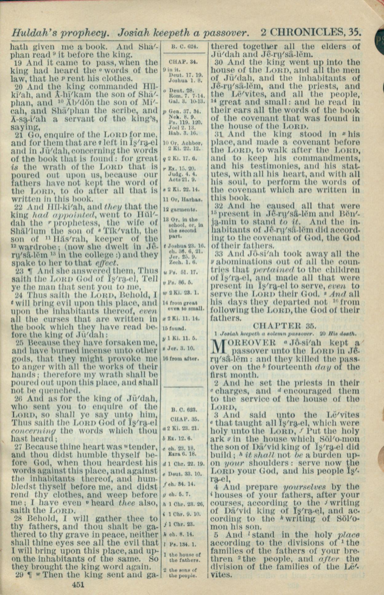 1916年Holy Bible 歷代志下 34 章 19 節到 35 章 5 節