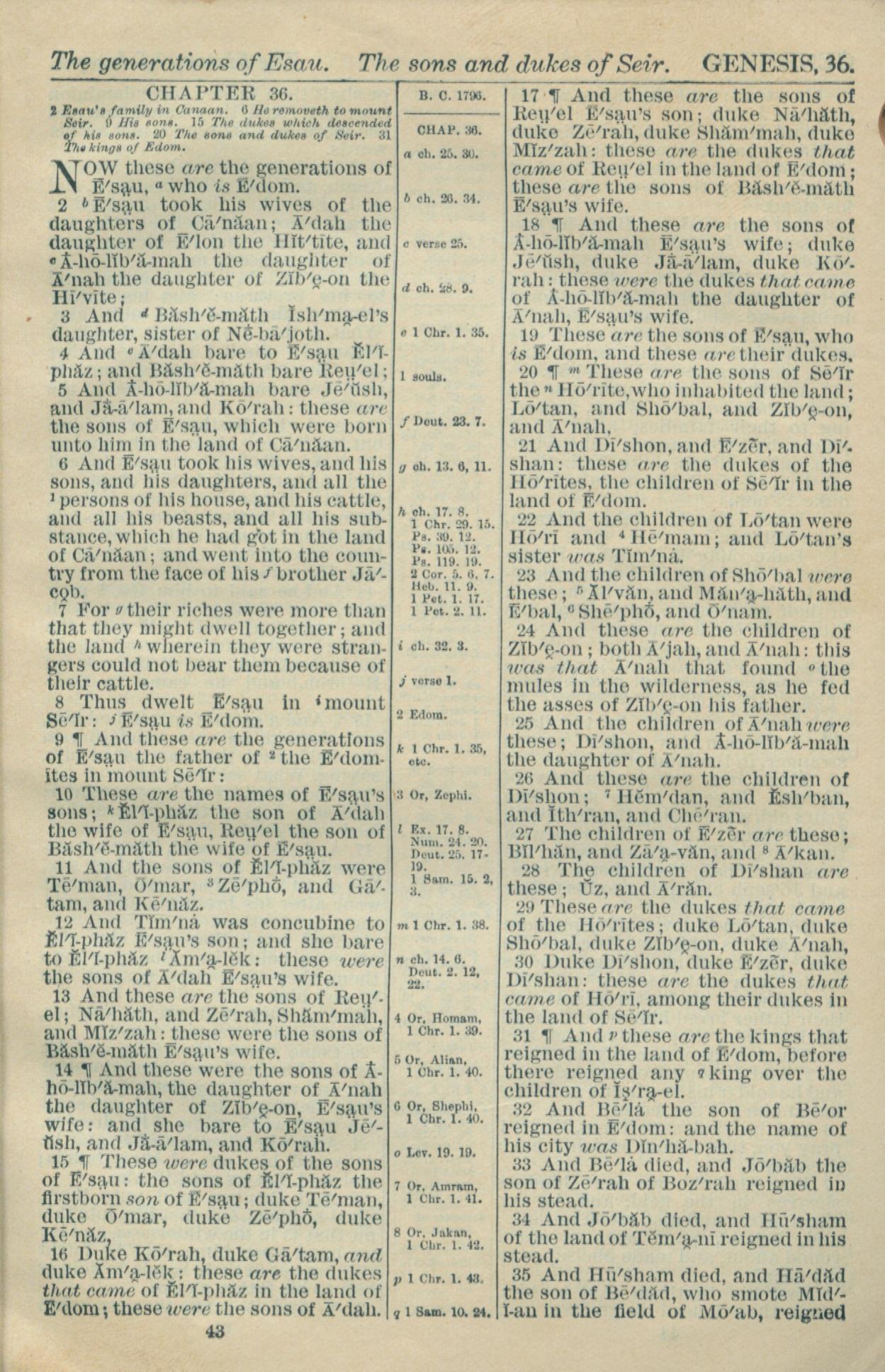 1916年Holy Bible 創世記 36 章 1 節到 36 章 35 節