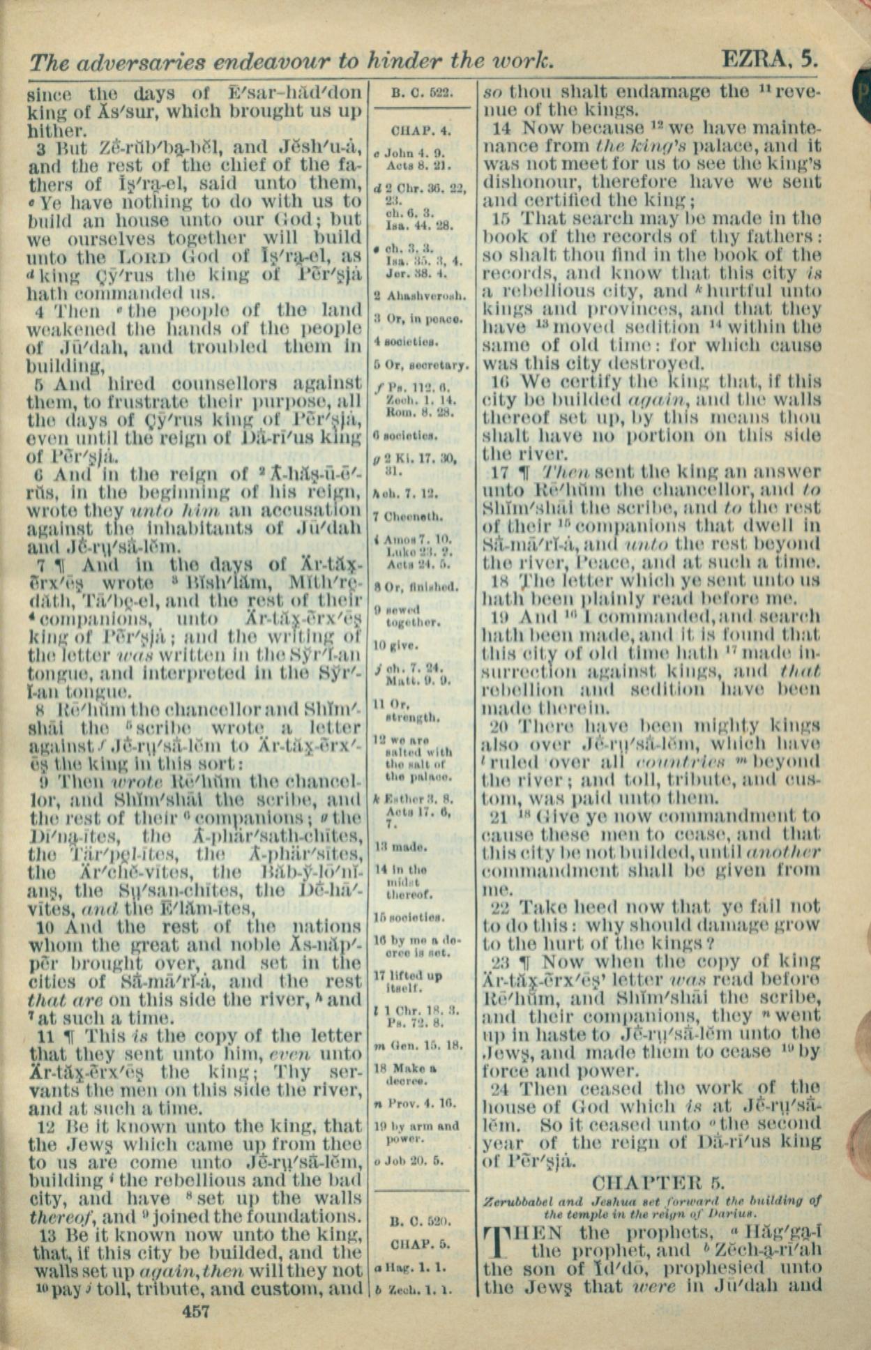1916年Holy Bible 以斯拉記 3 章 3 節到 5 章 1 節