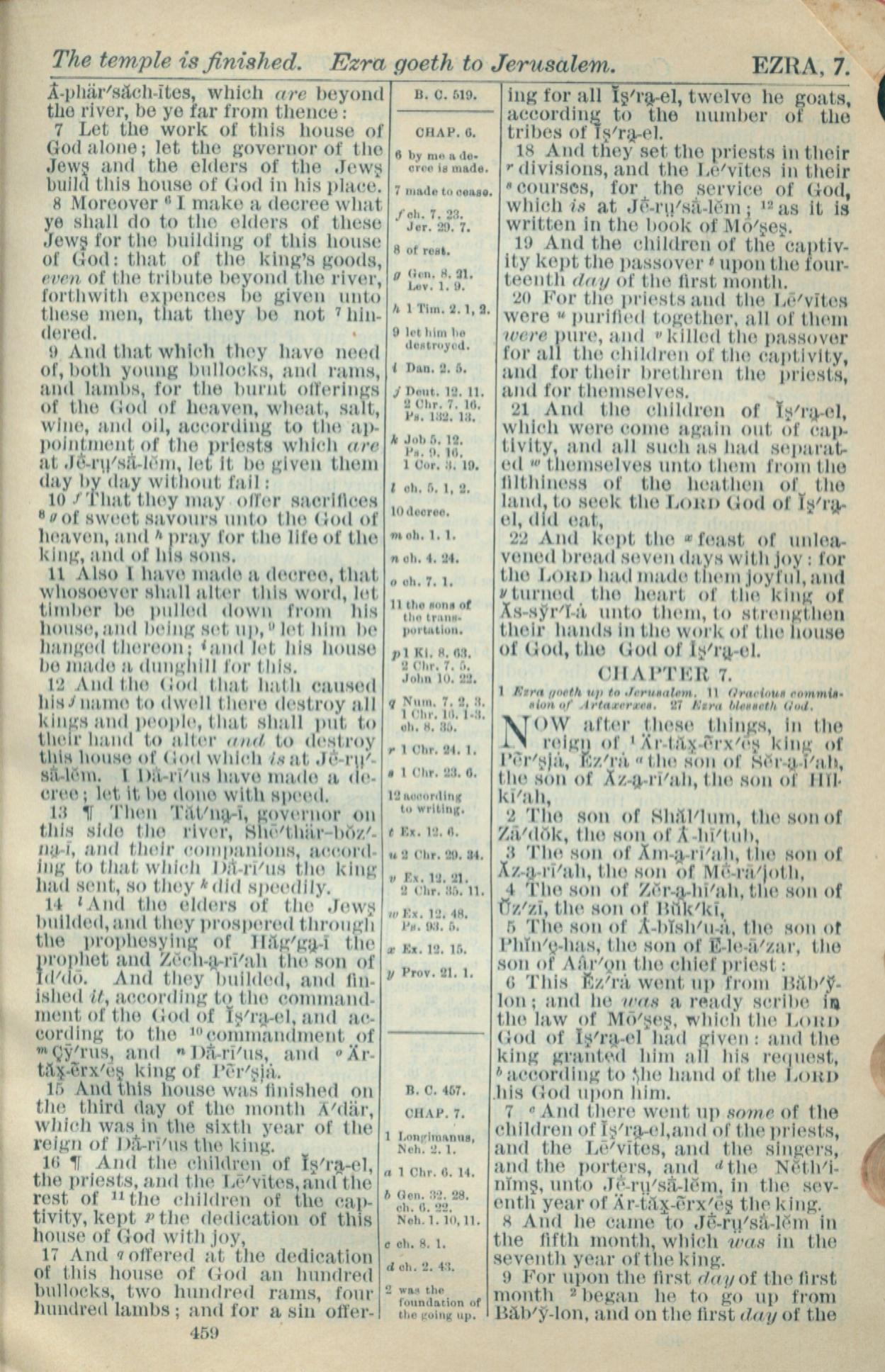 1916年Holy Bible 以斯拉記 6 章 7 節到 7 章 9 節