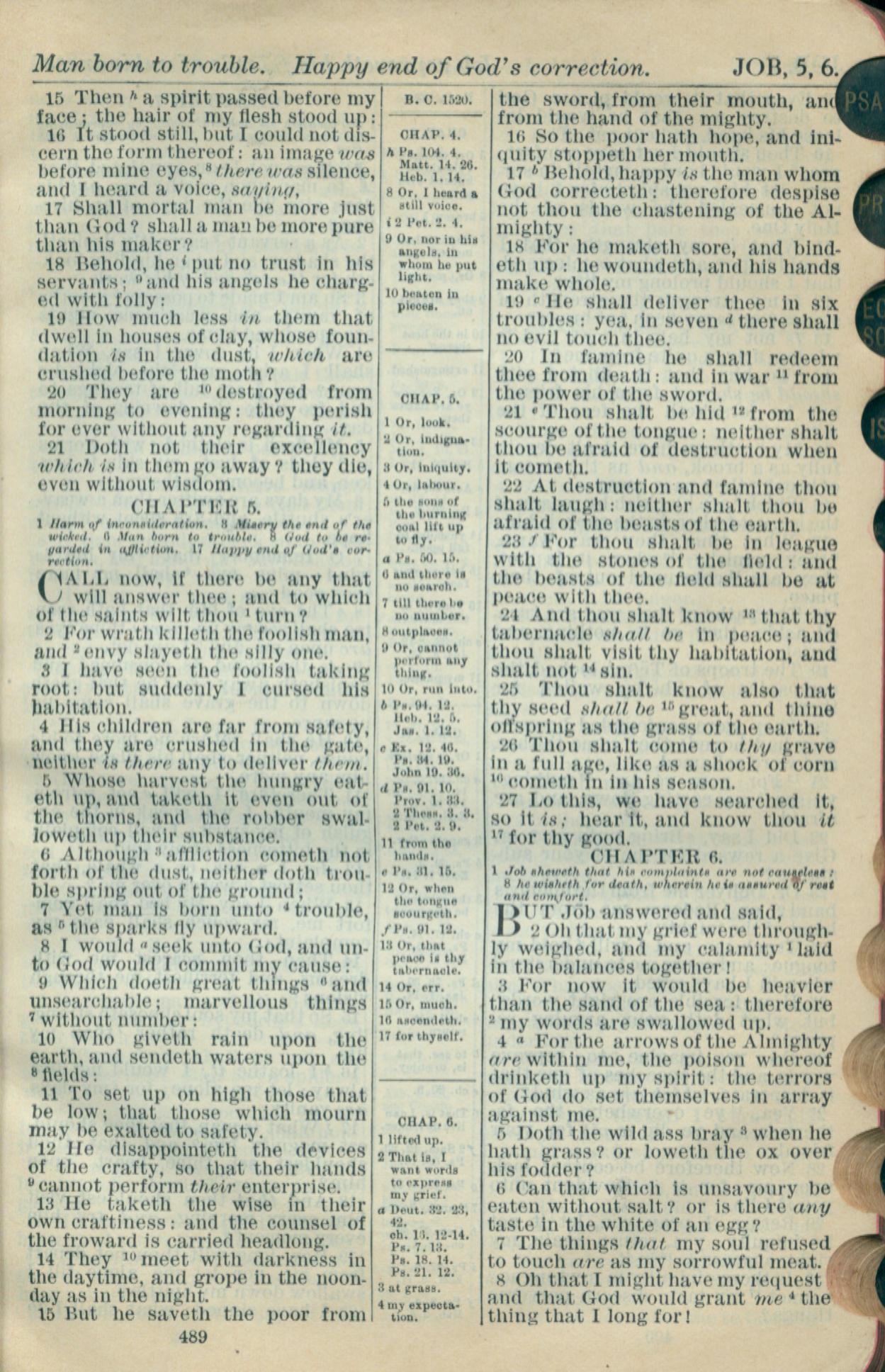 1916年Holy Bible 約伯記 4 章 15 節到 6 章 8 節