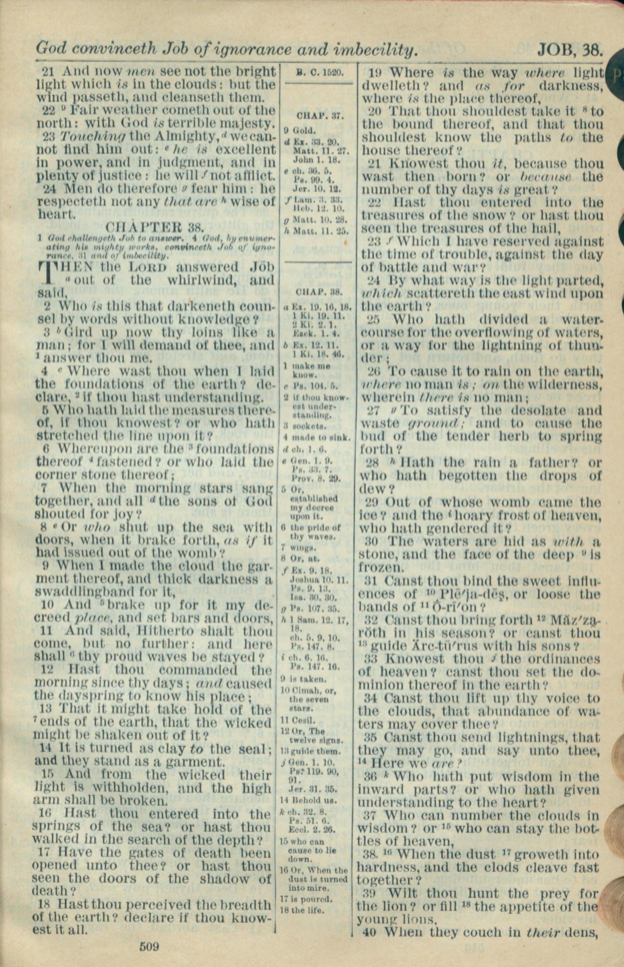 1916年Holy Bible 約伯記 37 章 21 節到 38 章 40 節