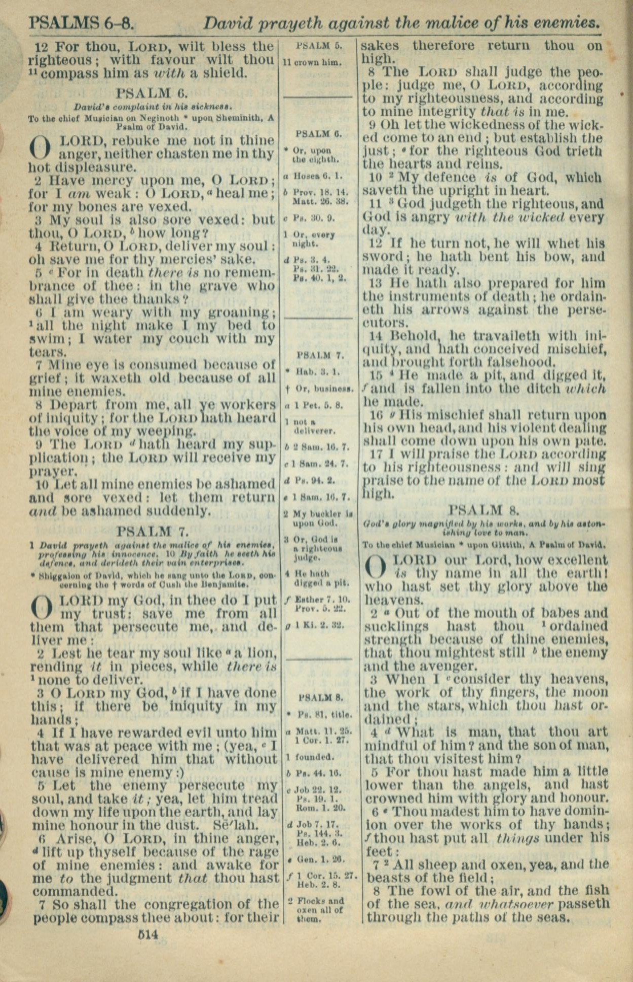 1916年Holy Bible 詩篇 5 章 12 節到 8 章 8 節
