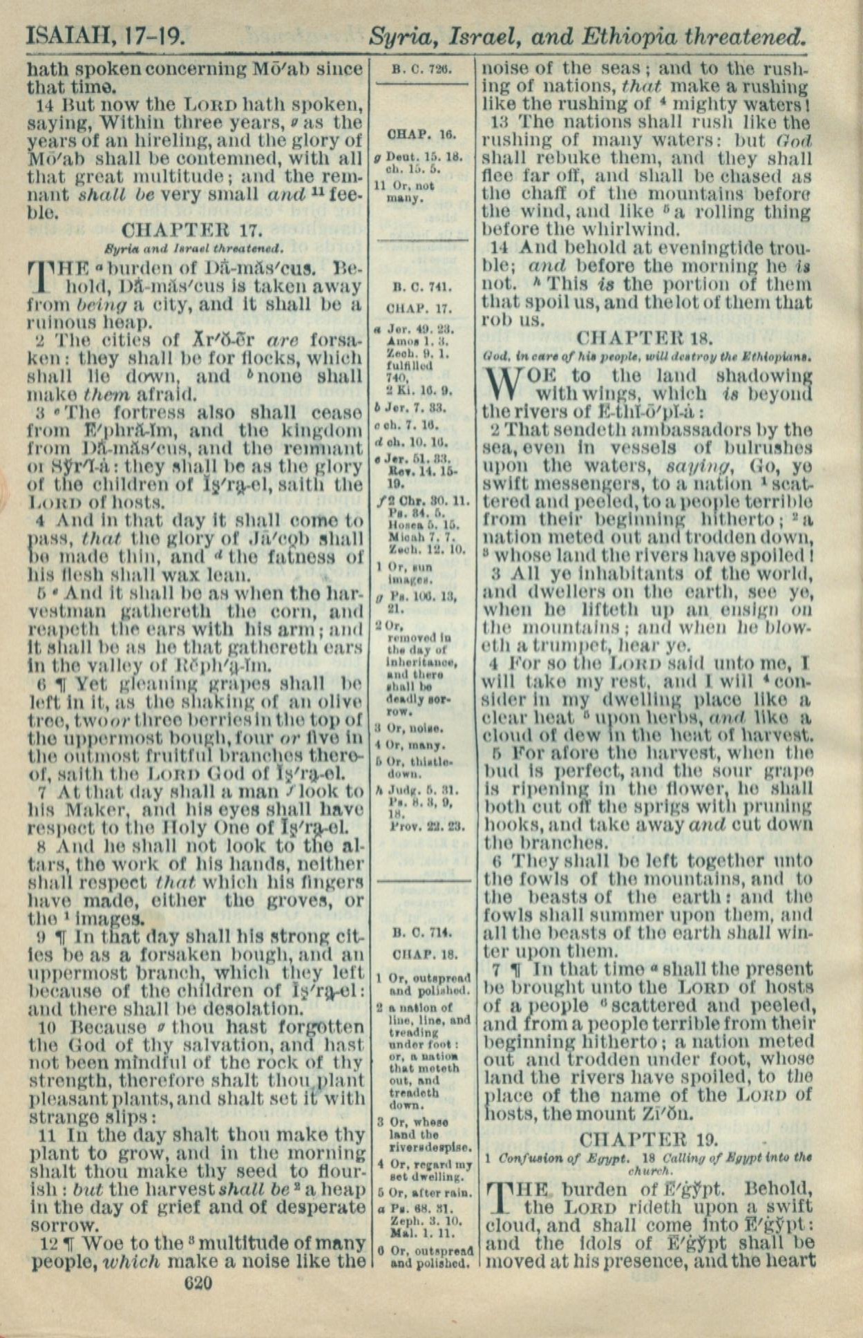 1916年Holy Bible 以賽亞書 16 章 14 節到 19 章 1 節