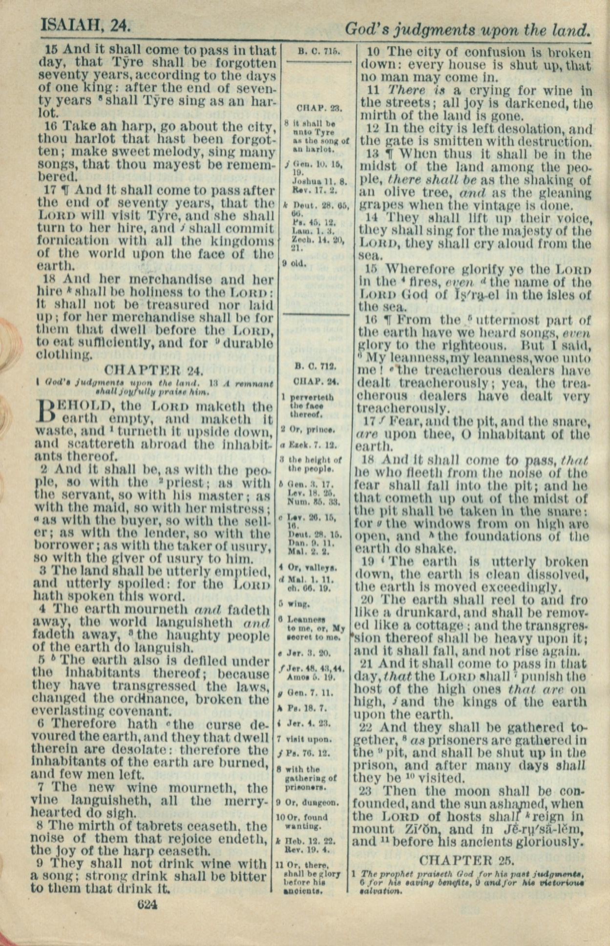 1916年Holy Bible 以賽亞書 23 章 15 節到 24 章 23 節