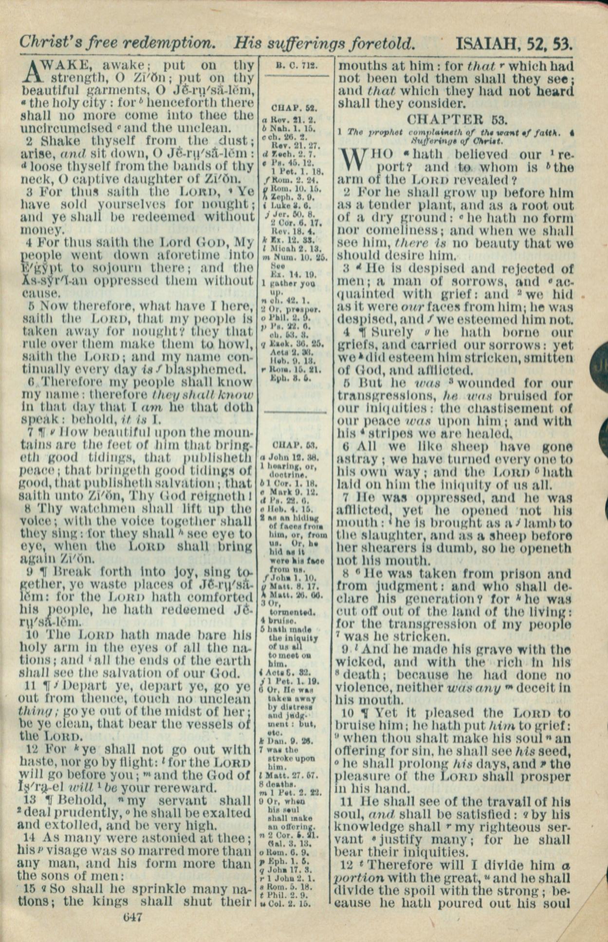 1916年Holy Bible 以賽亞書 52 章 1 節到 53 章 12 節