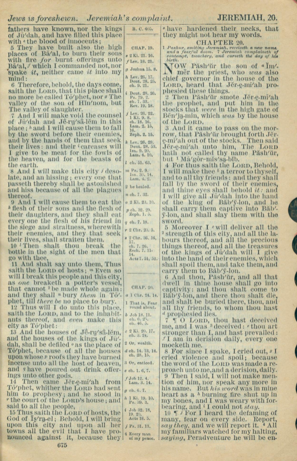 1916年Holy Bible 耶利米書 19 章 5 節到 20 章 10 節