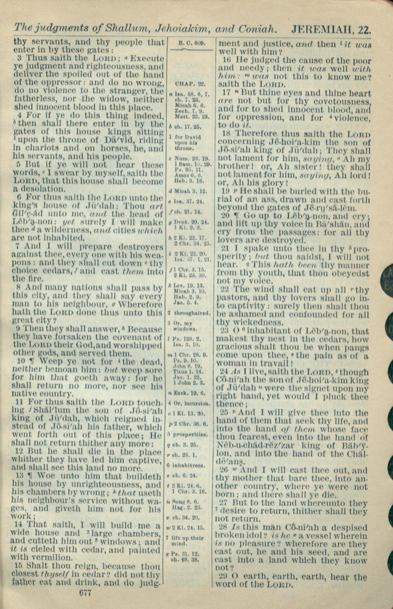 1916年Holy Bible 耶利米書 22 章 3 節到 22 章 29 節