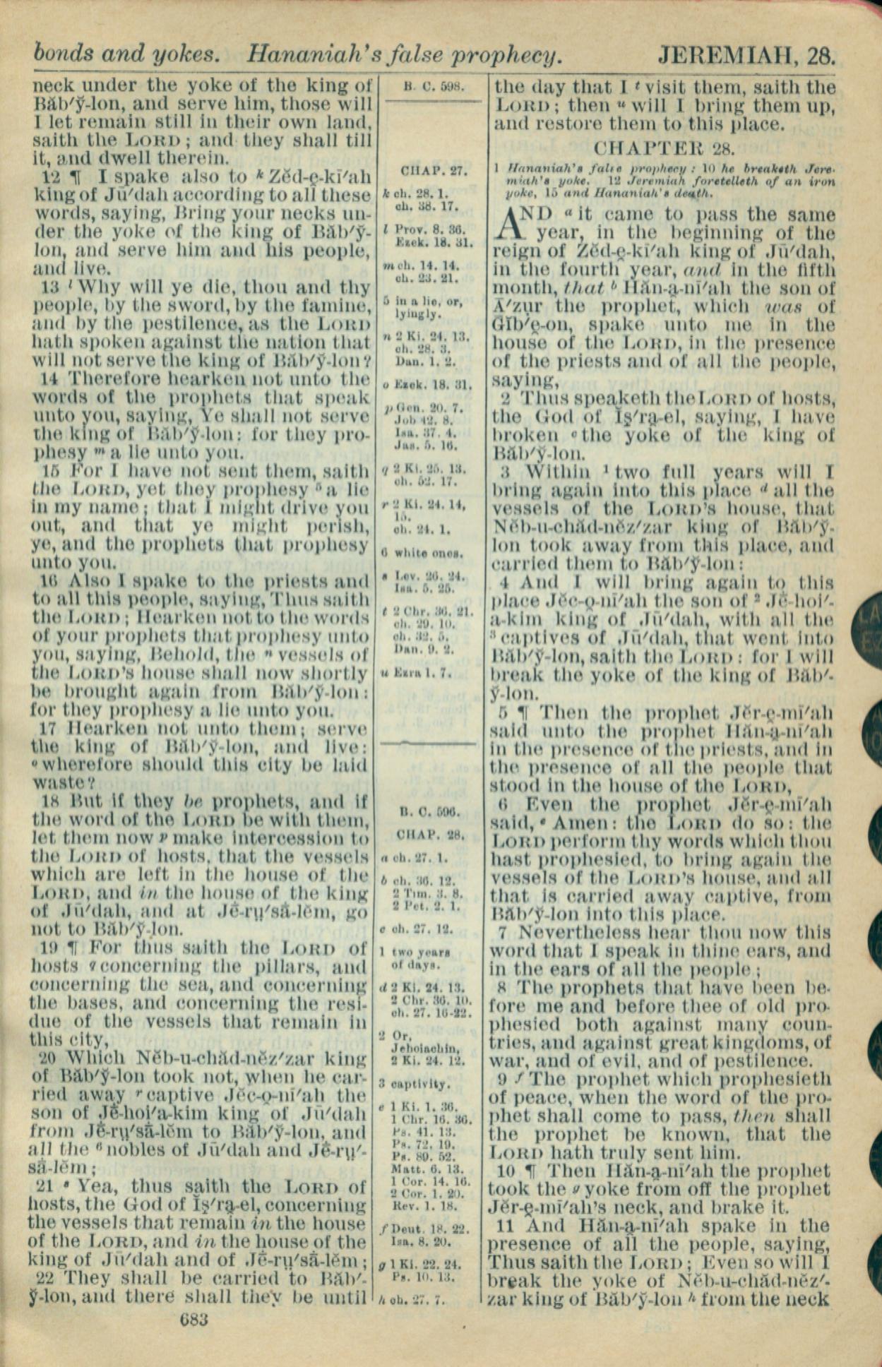1916年Holy Bible 耶利米書 27 章 12 節到 28 章 11 節
