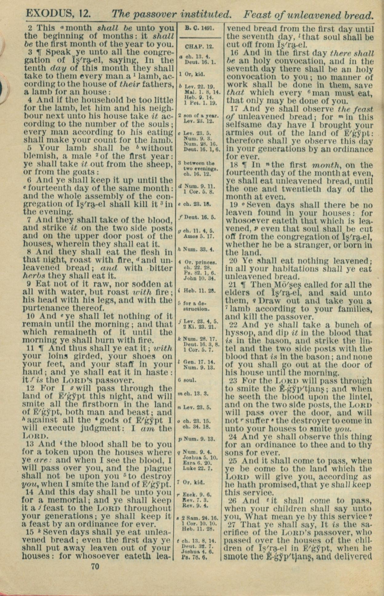 1916年Holy Bible 出埃及記 12 章 2 節到 12 章 27 節