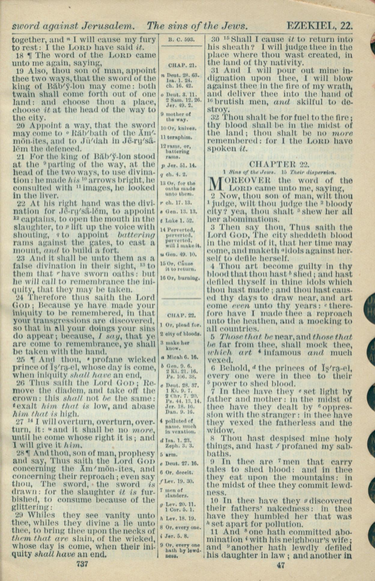 1916年Holy Bible 以西結書 21 章 18 節到 22 章 11 節