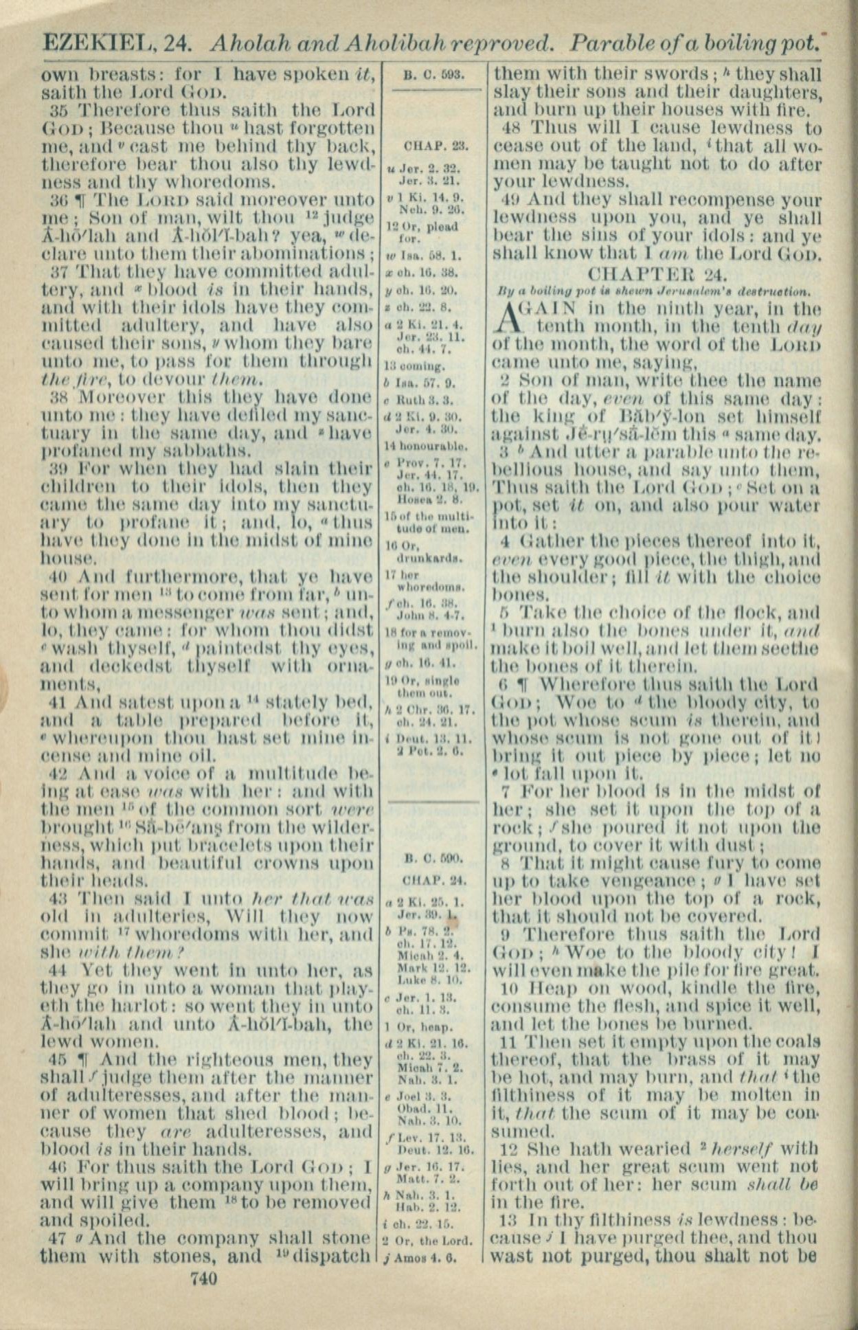 1916年Holy Bible 以西結書 23 章 35 節到 24 章 13 節
