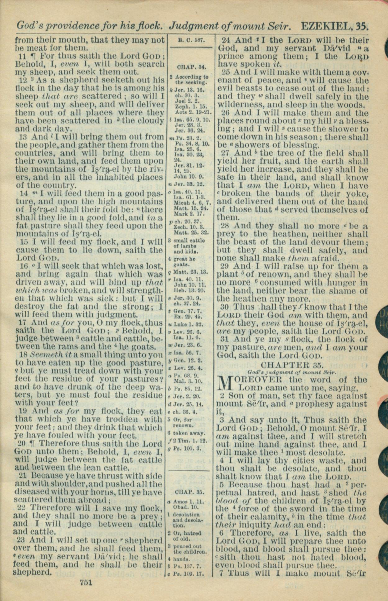 1916年Holy Bible 以西結書 34 章 11 節到 35 章 7 節