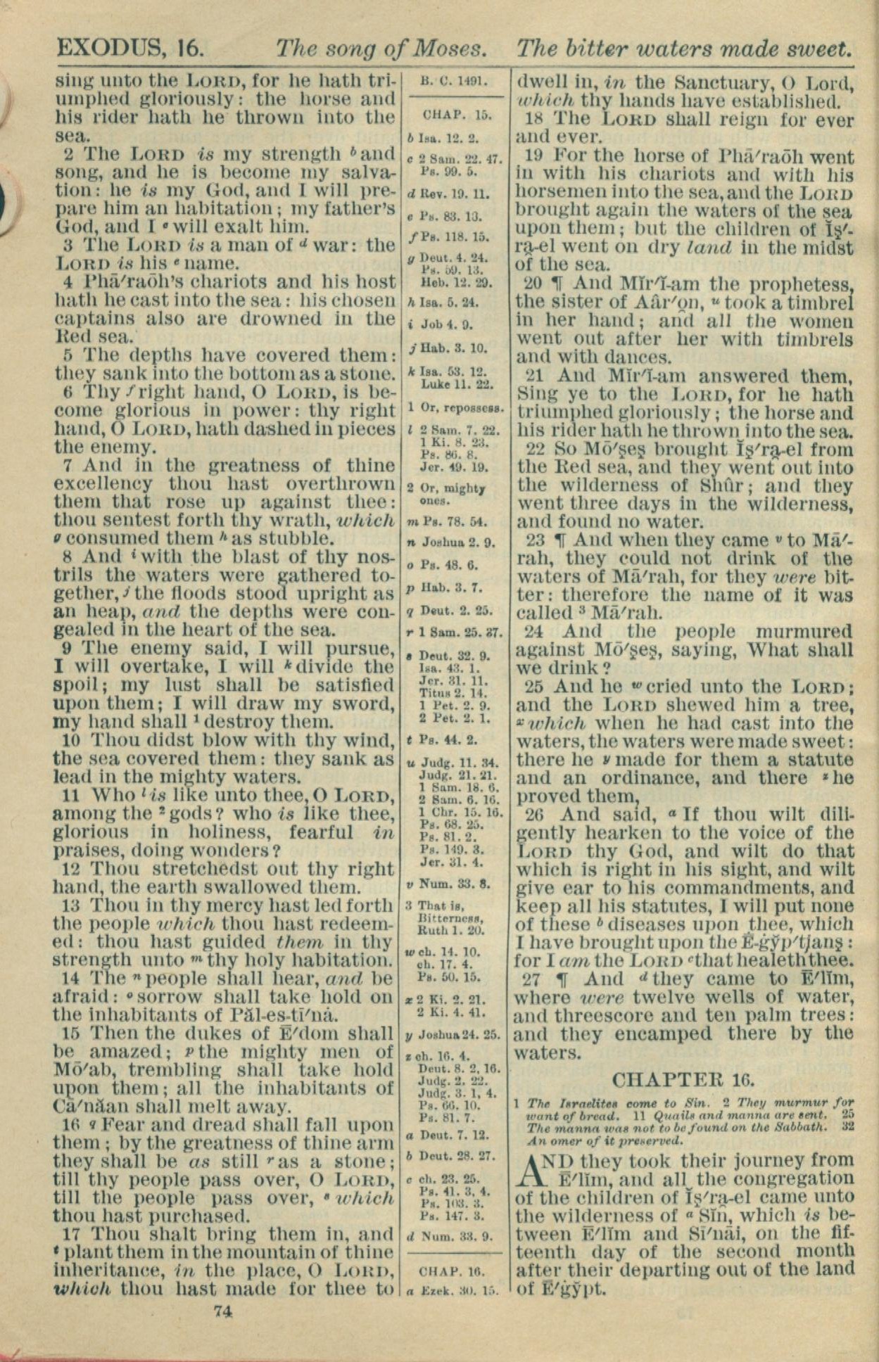 1916年Holy Bible 出埃及記 15 章 2 節到 16 章 1 節