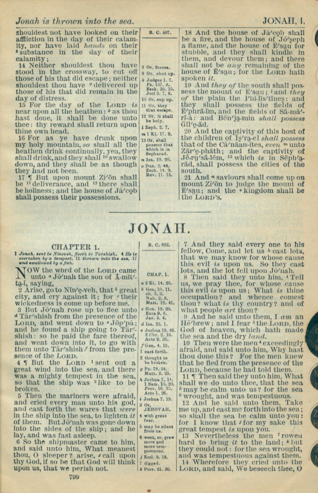 1916年Holy Bible 約拿書 1 章 1 節到 1 章 14 節