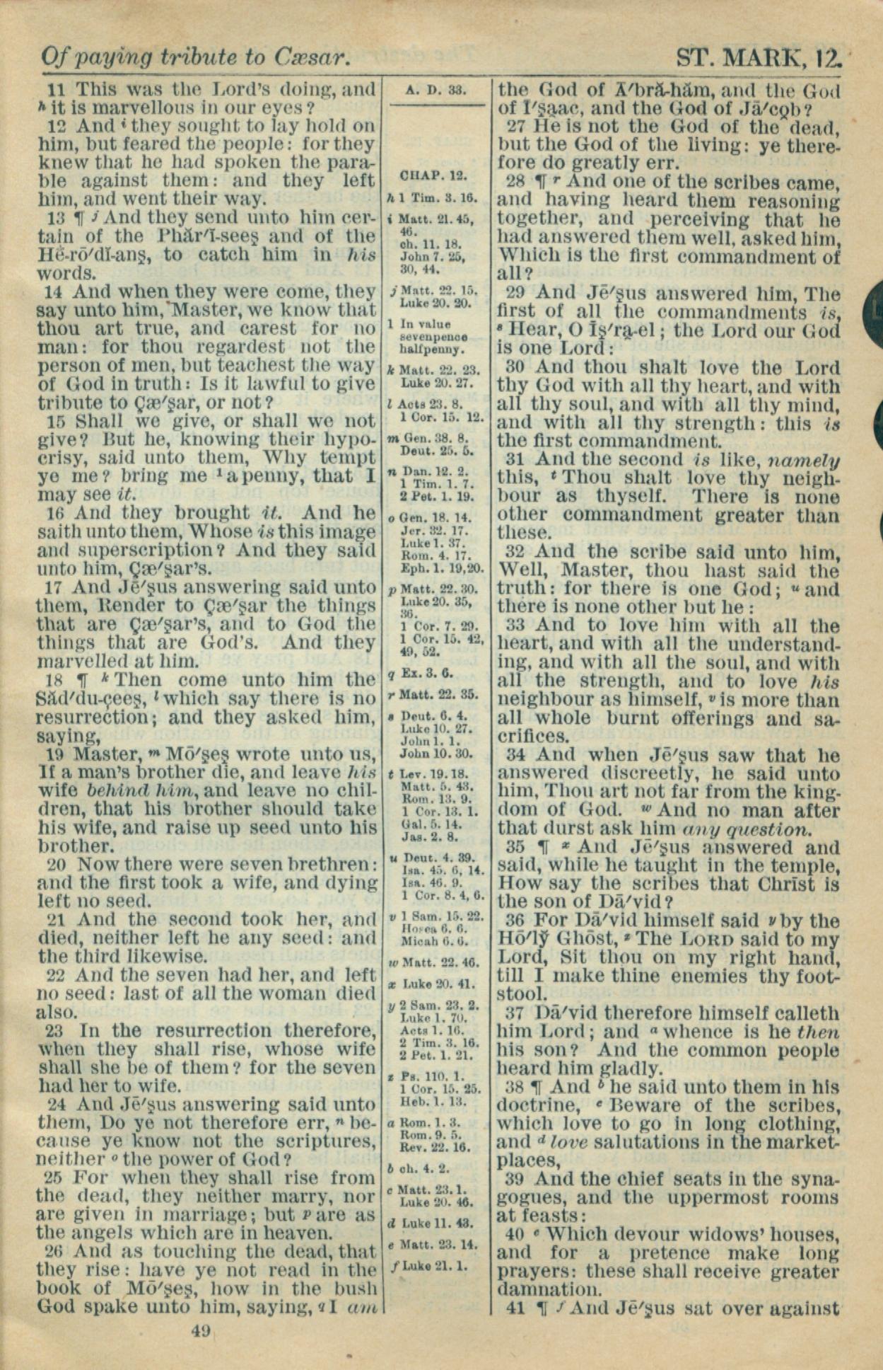 1916年Holy Bible 馬可福音 12 章 11 節到 12 章 41 節