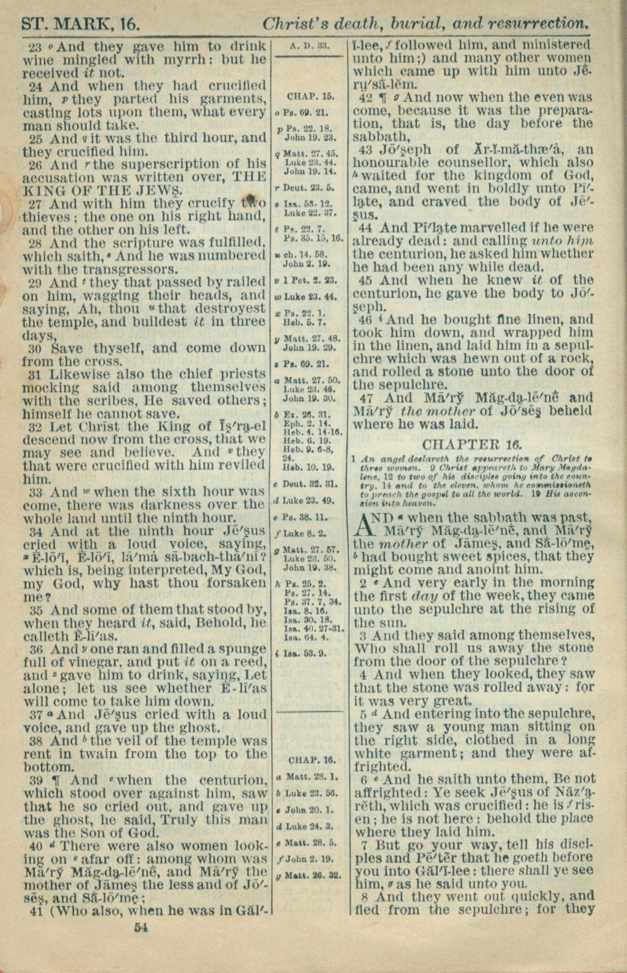 1916年Holy Bible 馬可福音 15 章 23 節到 16 章 8 節