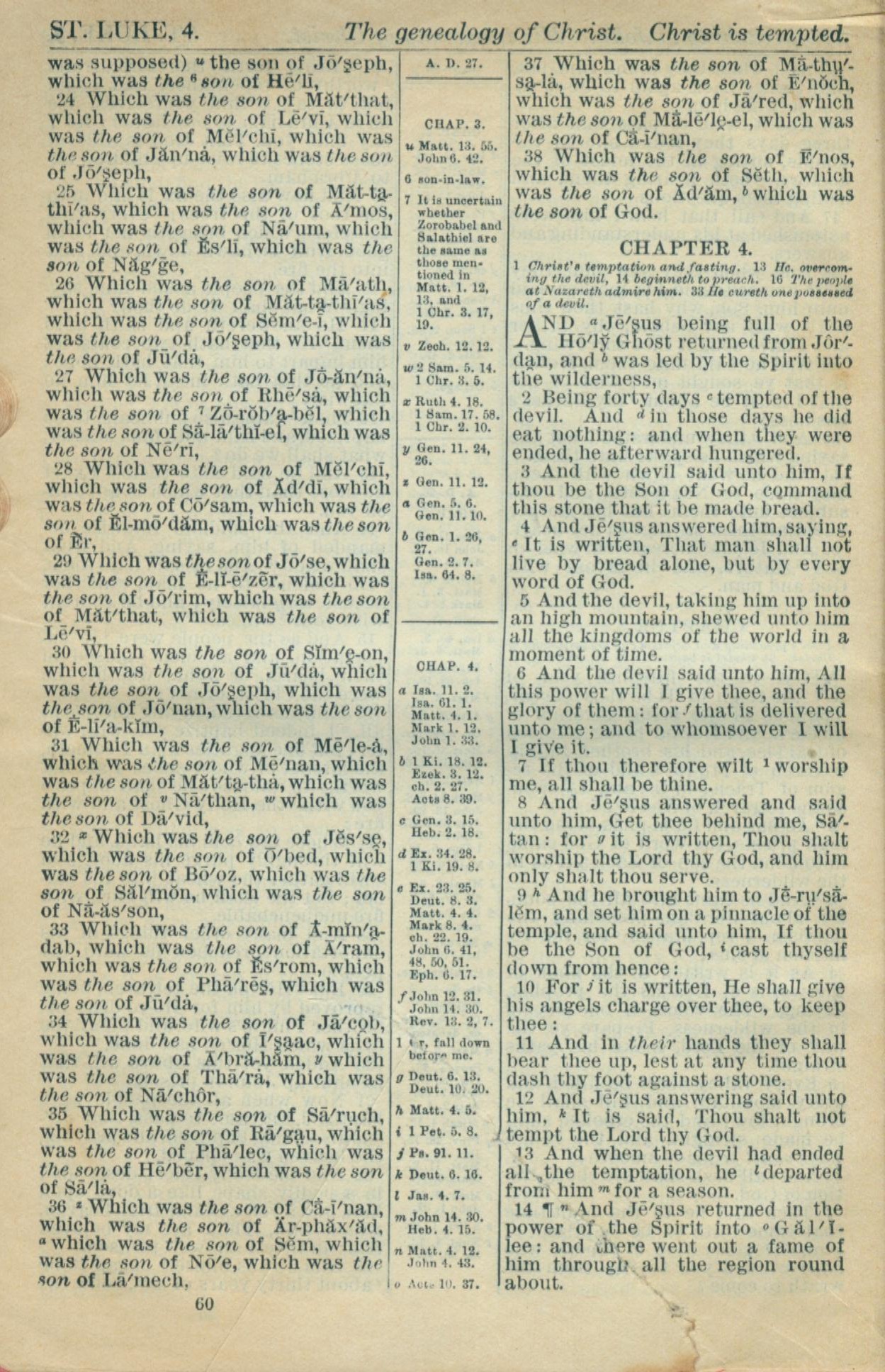 1916年Holy Bible 路加福音 3 章 24 節到 4 章 14 節