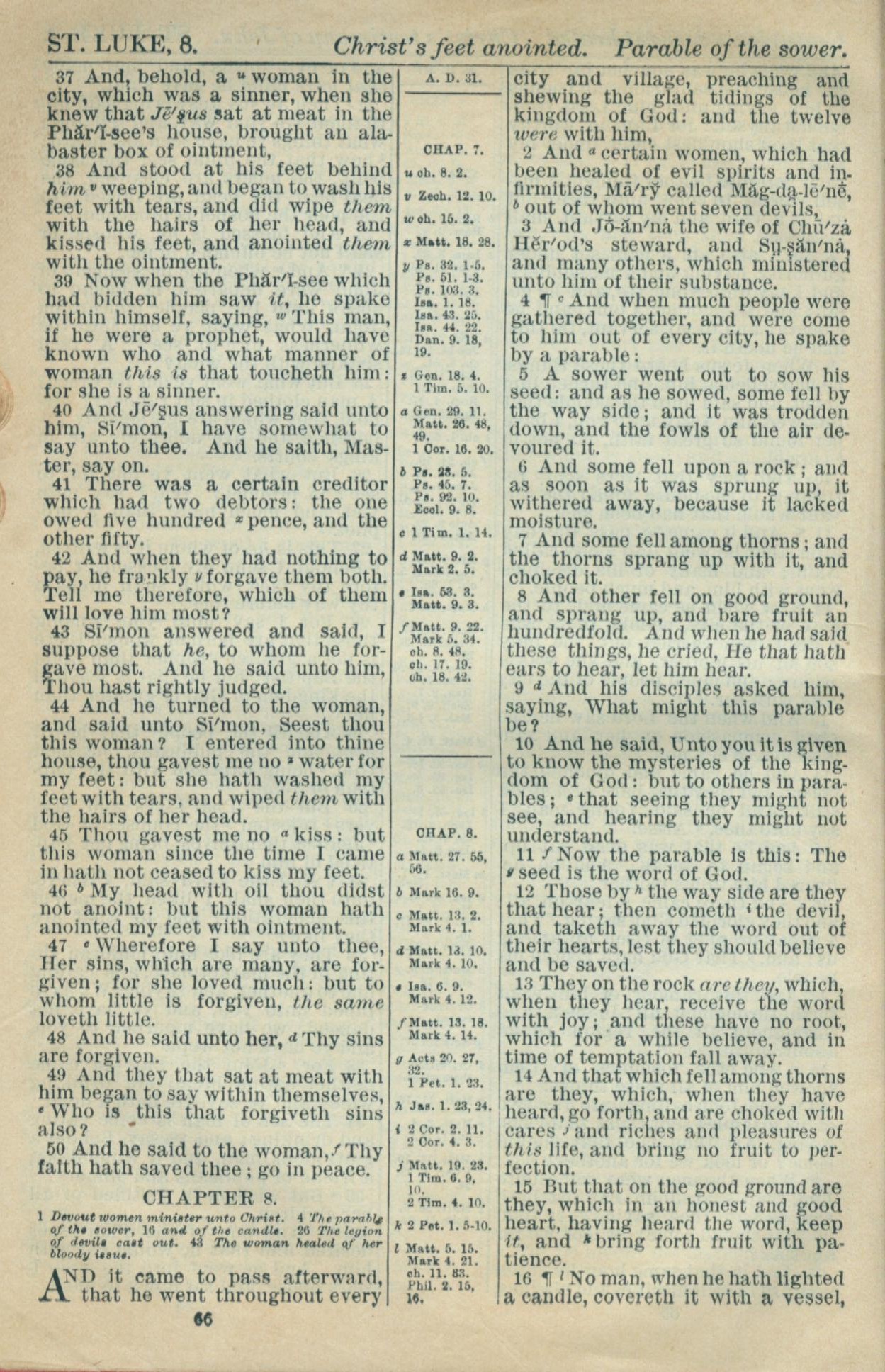 1916年Holy Bible 路加福音 7 章 37 節到 8 章 16 節
