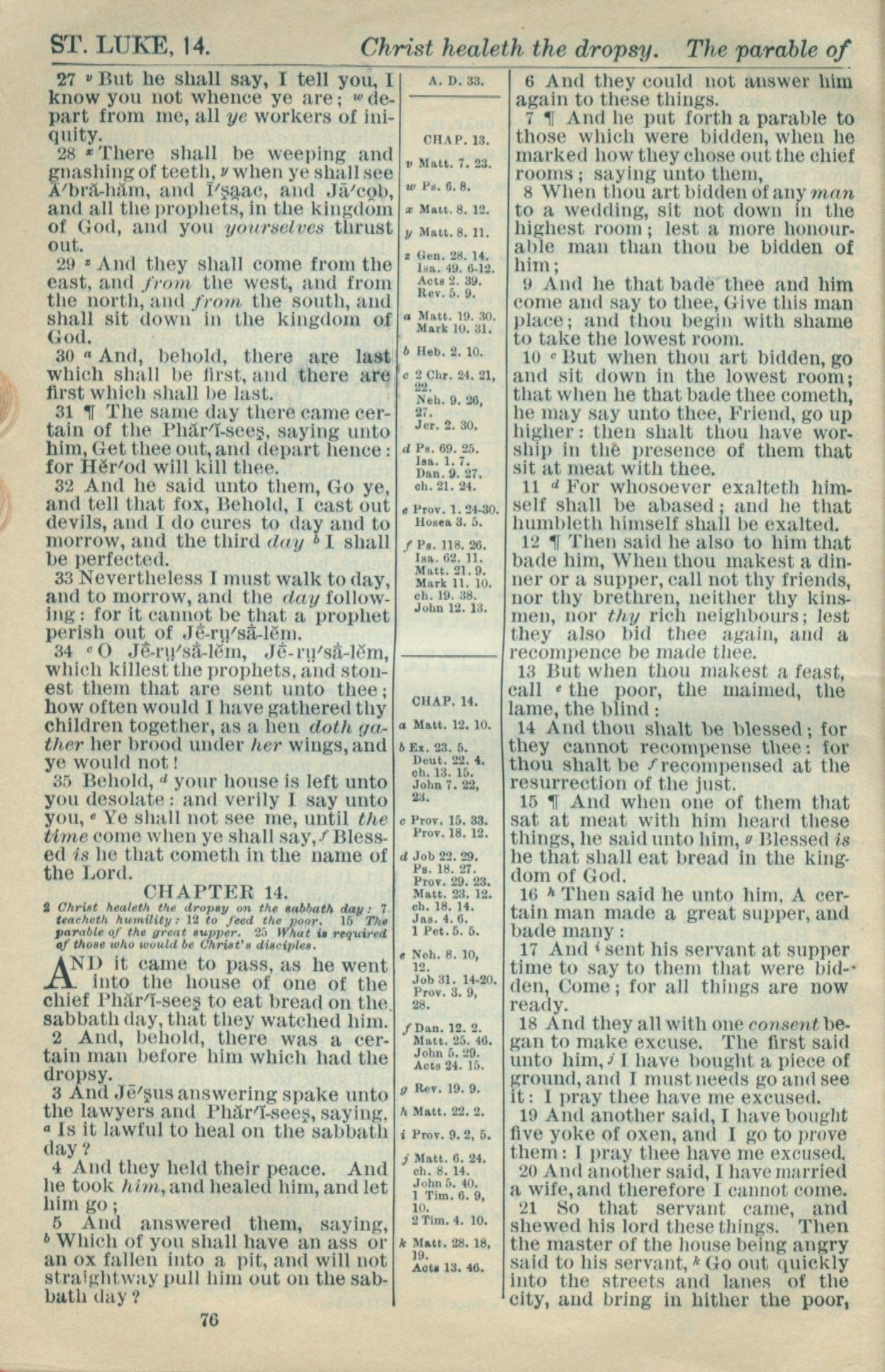 1916年Holy Bible 路加福音 13 章 27 節到 14 章 21 節