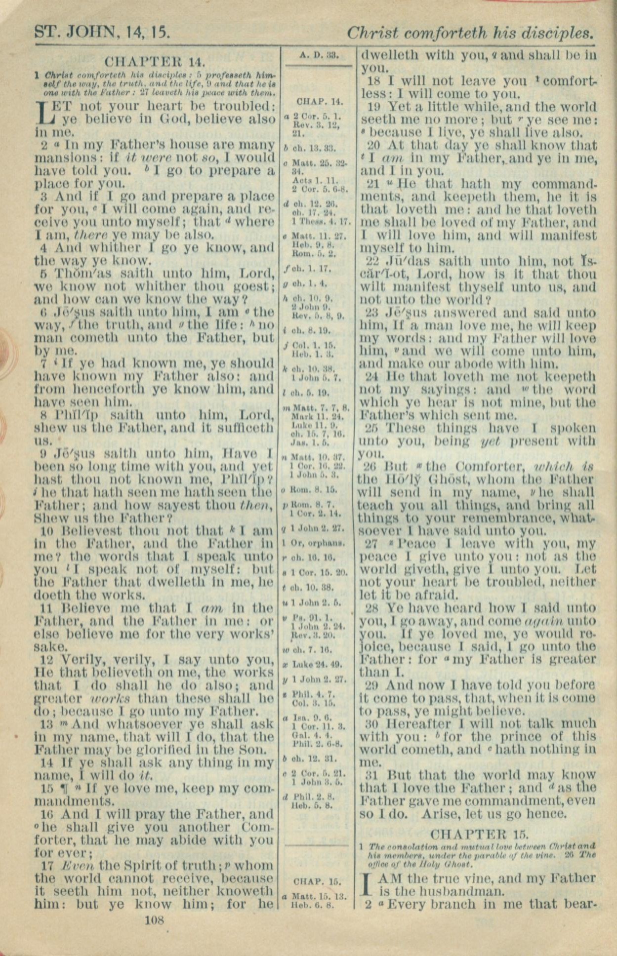 1916年Holy Bible 約翰福音 14 章 1 節到 15 章 2 節