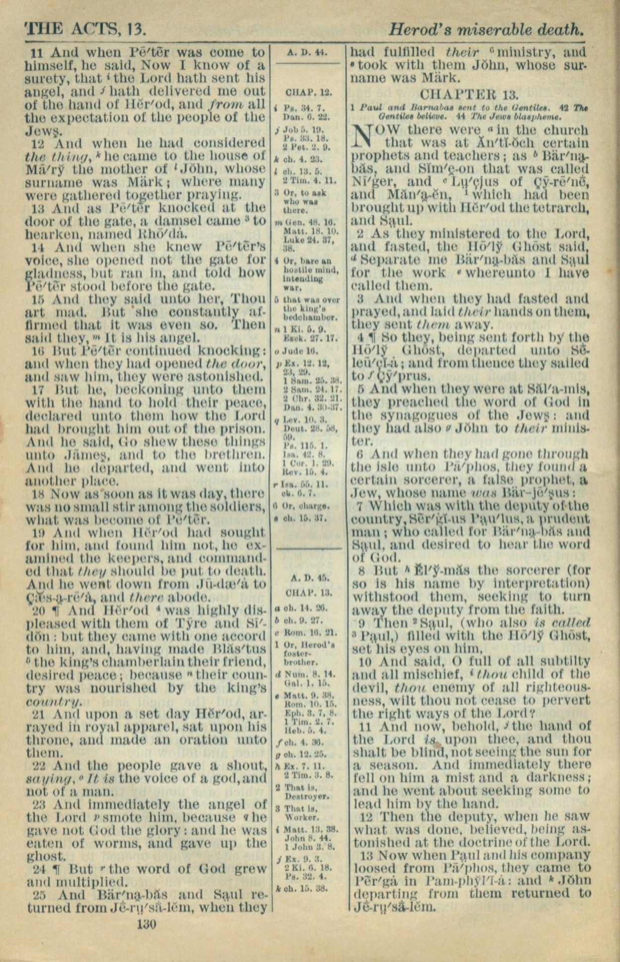 1916年Holy Bible 使徒行傳 12 章 11 節到 13 章 13 節